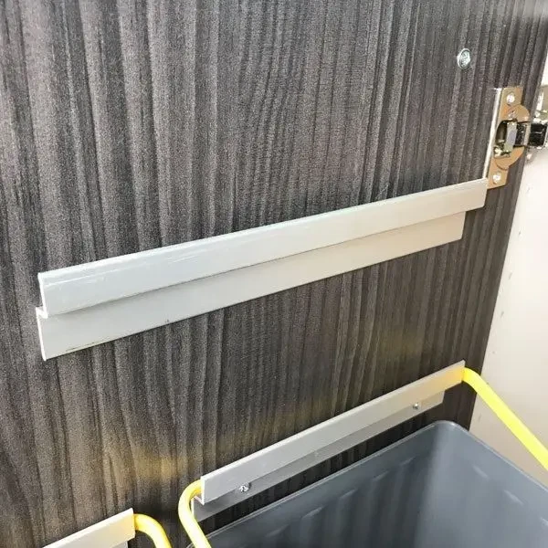 Det medfølgende ophængsbeslag er klar til at blive monteret fx på lågen ved vaskeskabet. Her kan den bruges til opbevaring af fx opvasketabs, afspændingsmiddel, batterier, clips til plastposer osv.