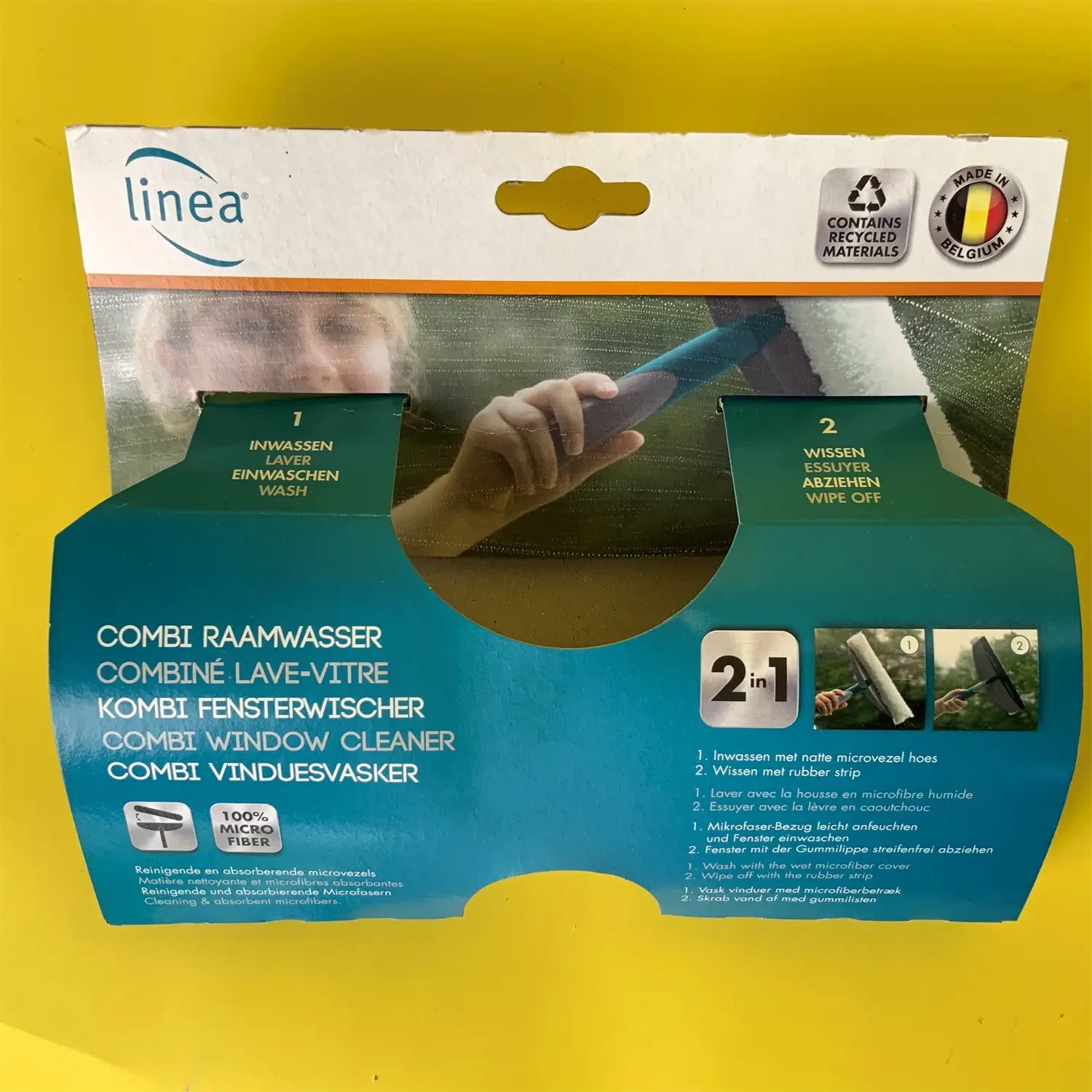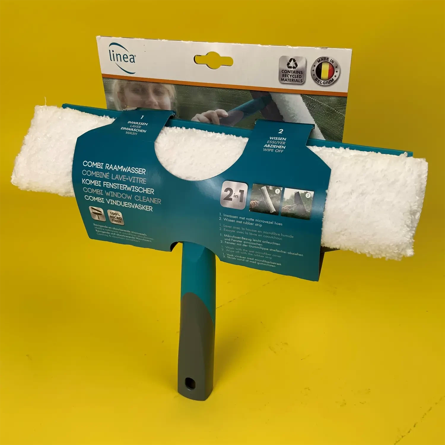LINEA COMBI vinduesvasker med microfiber gør at du nemt kan sæbe dine vinduer ind. Vender du den om, så sidder der en skraber med syntetisk gummi, som let fjerner sæbevandet fra vinduet igen.