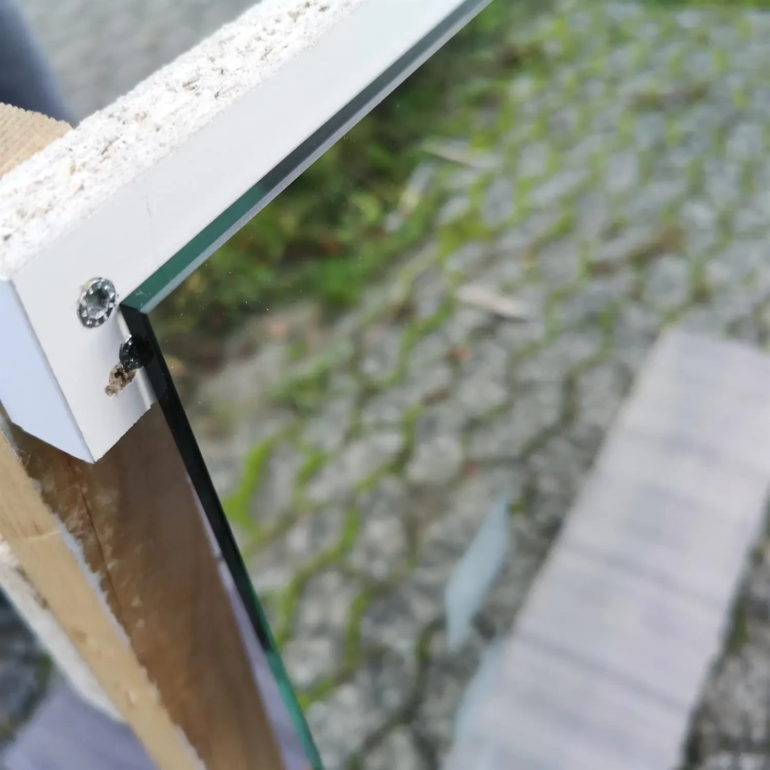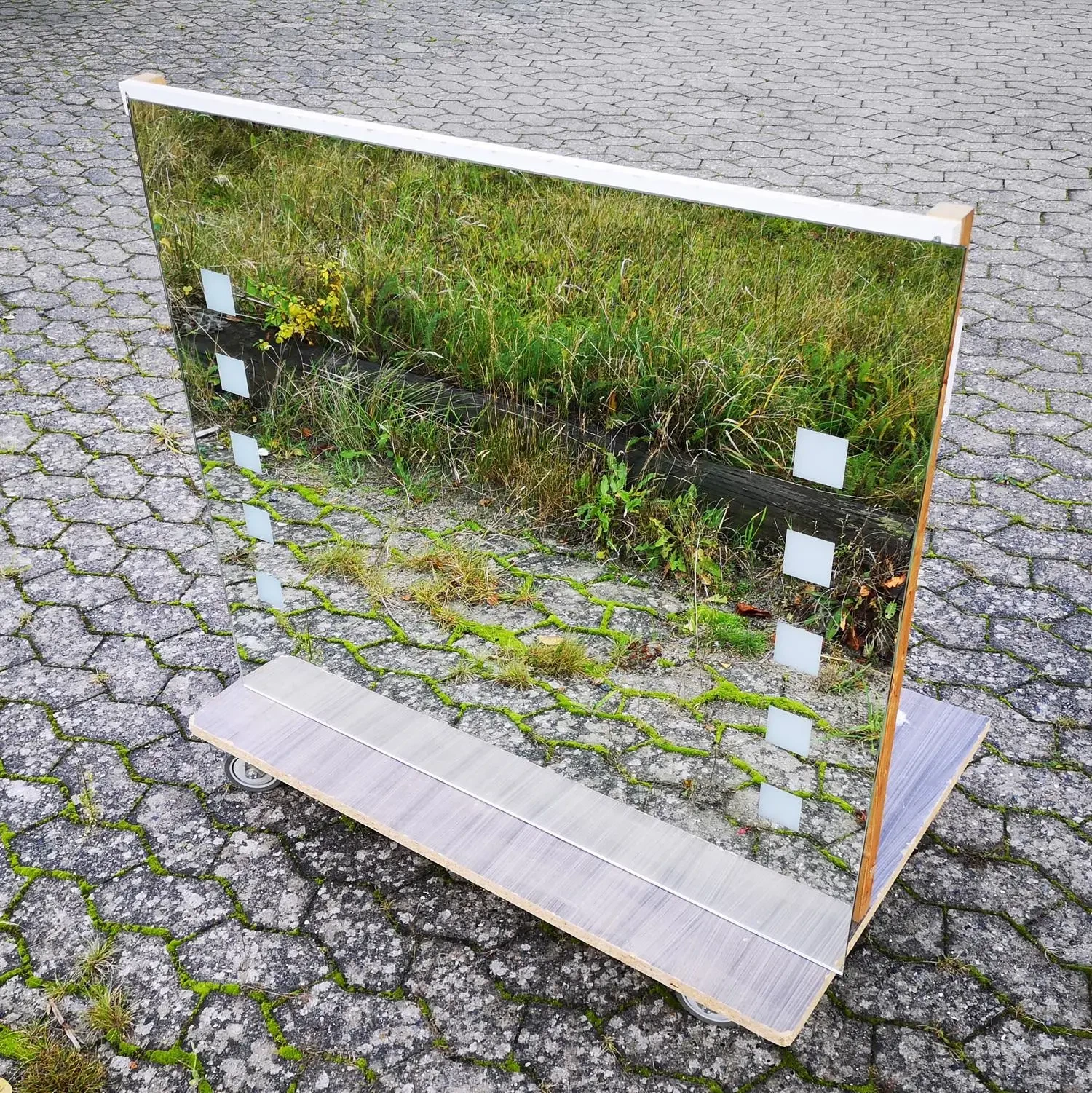 Hver stribe af lysfelter sidder højdemæssigt præcist midt i spejlet, selvom det på billedet ser ud som om, de er tættest på spejlets underkant.