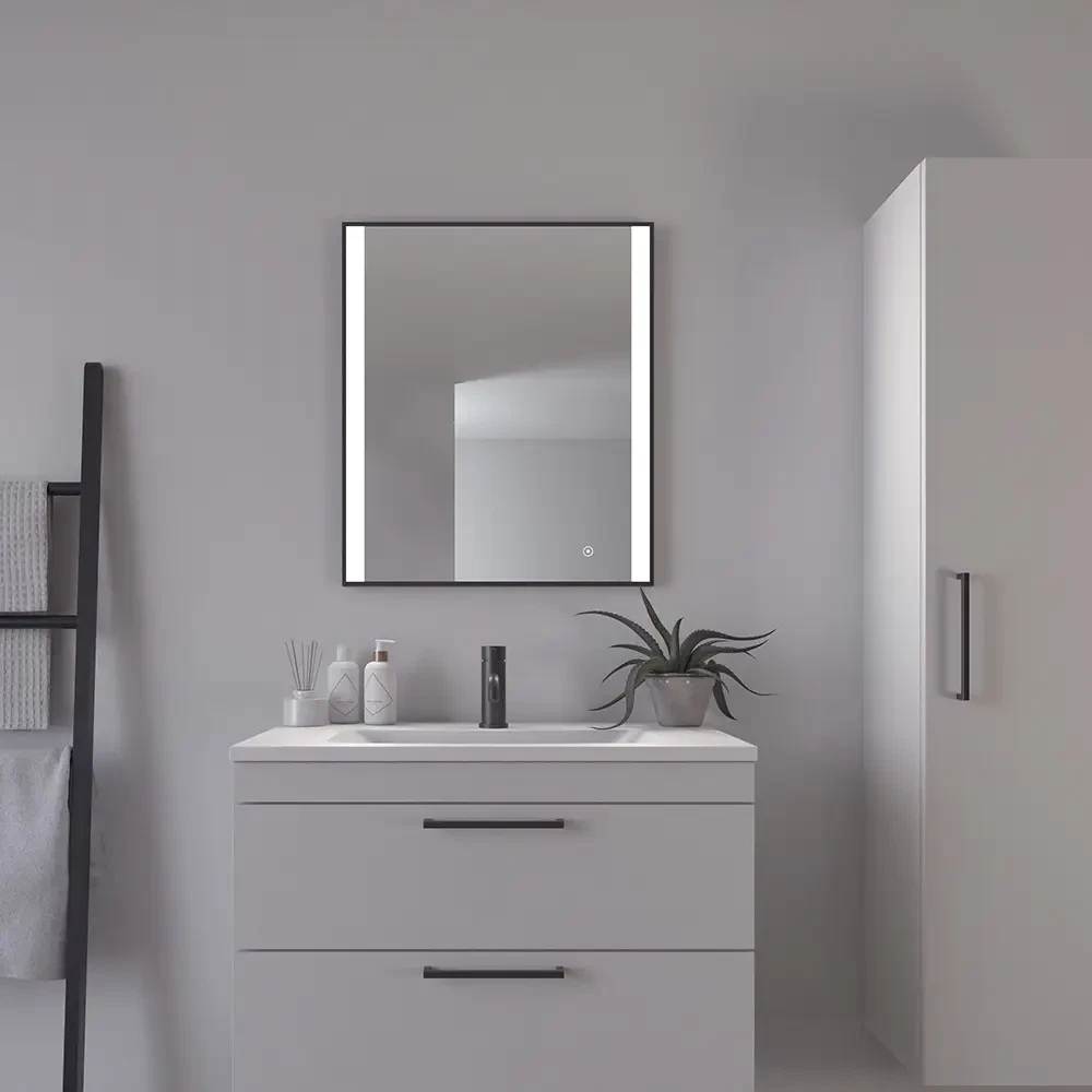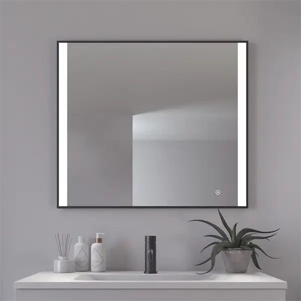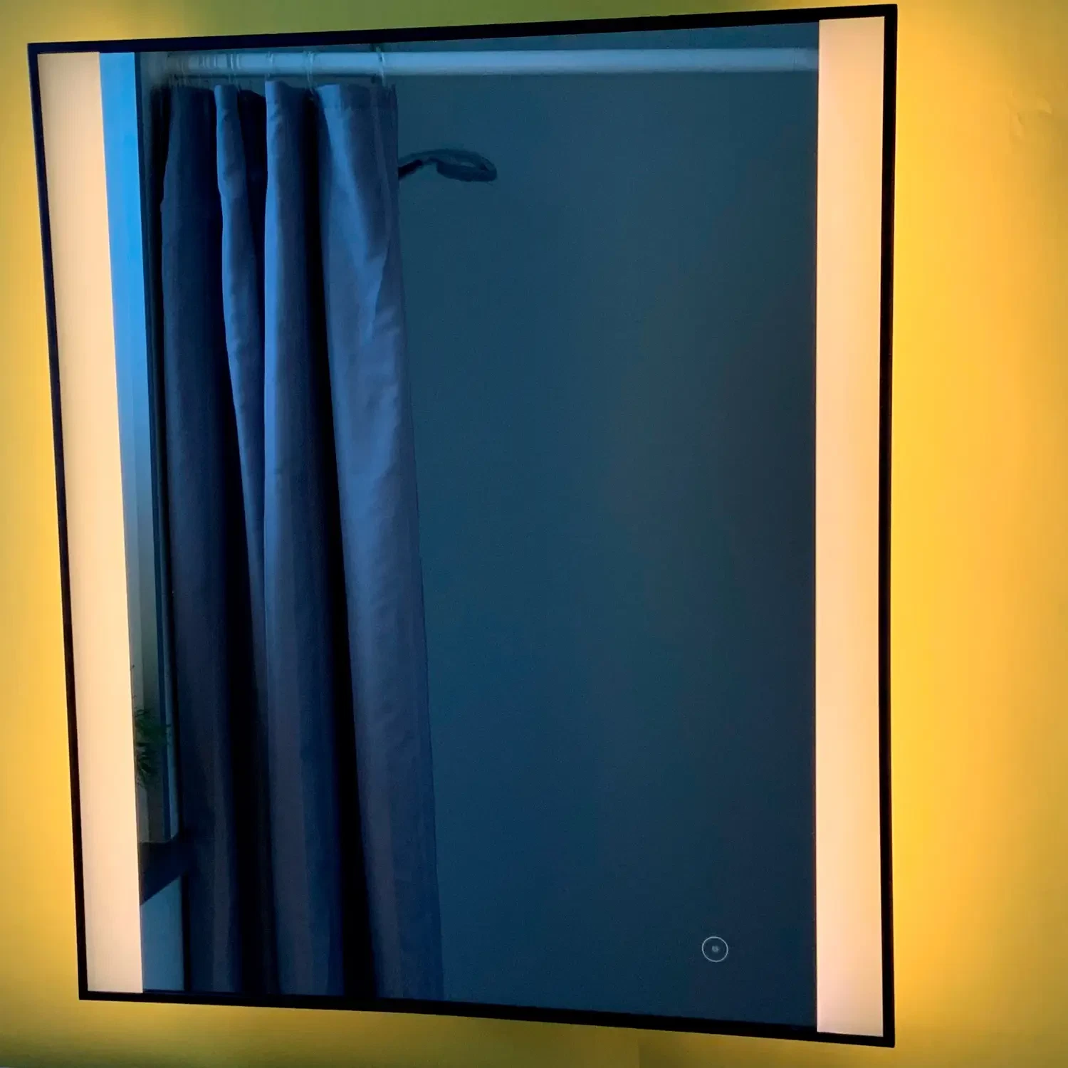 Med en touch knap der kan tænde, slukke, dæmpe lyset. Spejlet er med en god lyskvalitet.