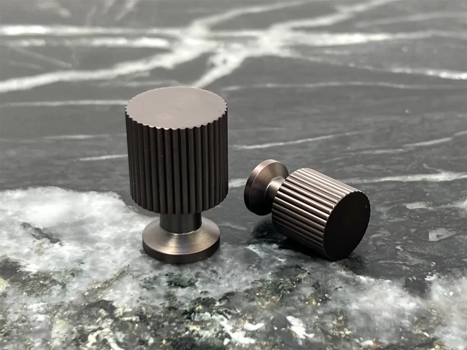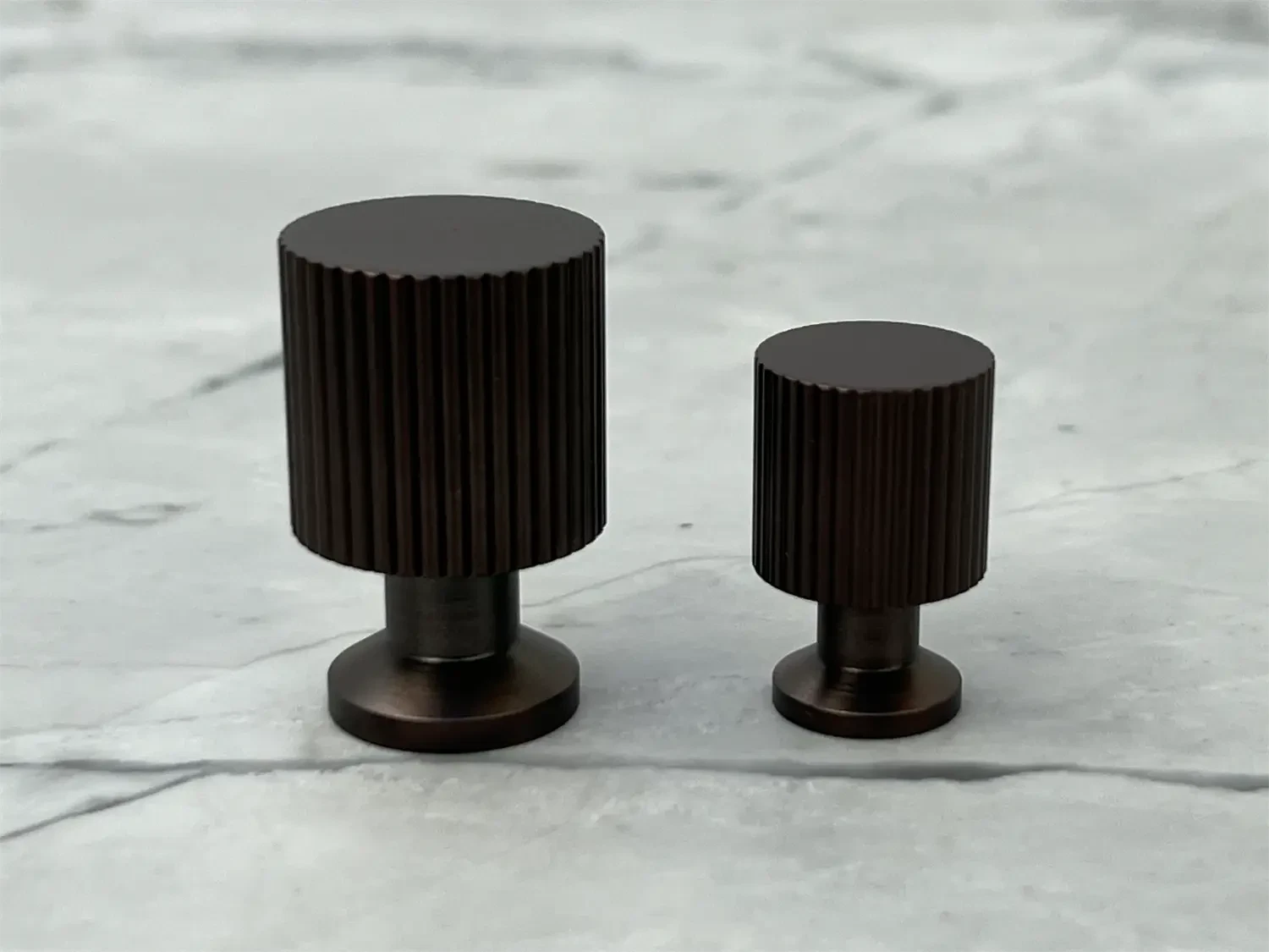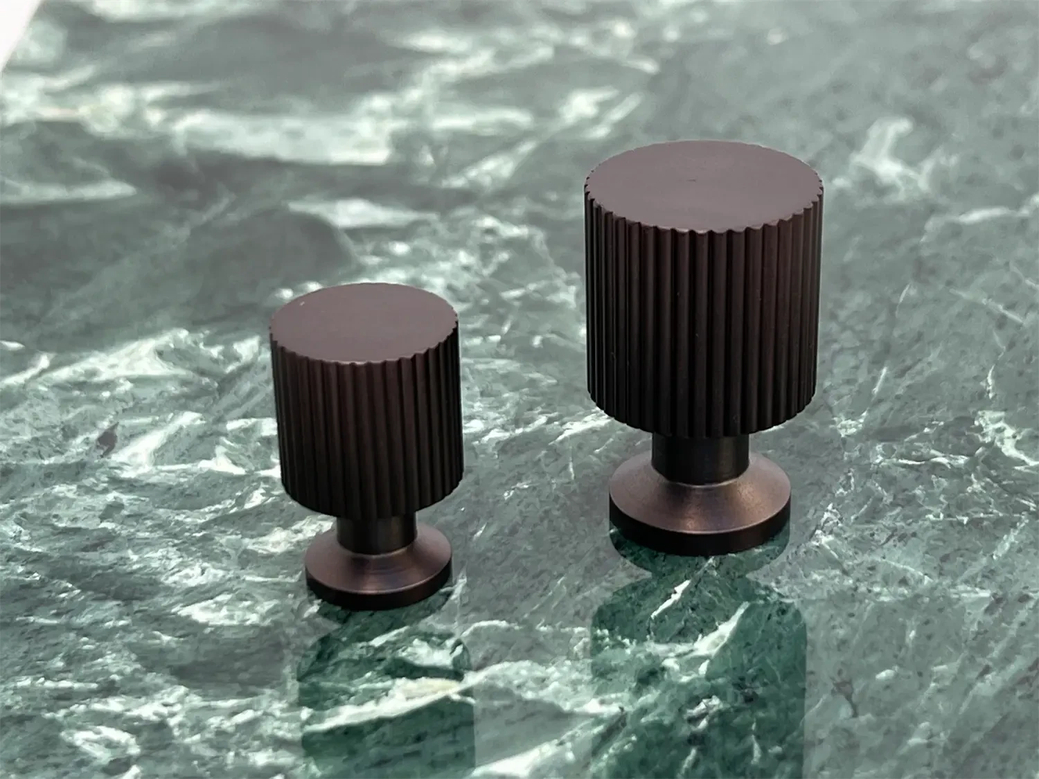 Knoppen den findes i 2 højder 25 mm / 33 mm., den har linjeret riller på langs, det giver en lækker detalje i ethvert hjem, som skaber blikfang idet der ikke er mange mage til denne.