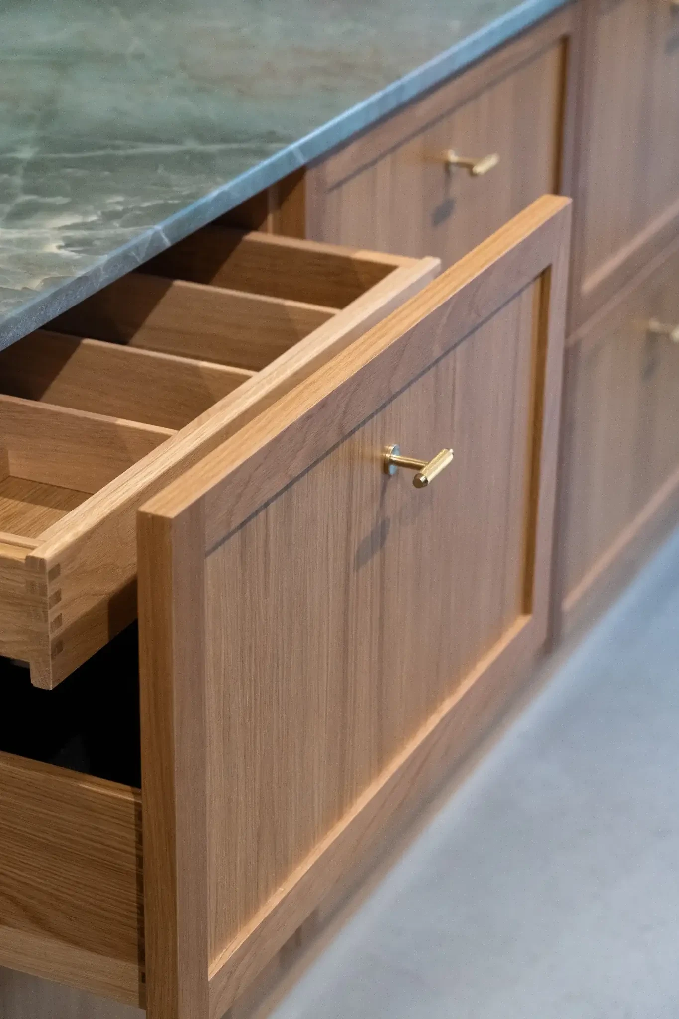 Knopper og greb er praktiske og gør det nemt at åbne tungere køkkenfronter som køleskabet og opvaskemaskinen.