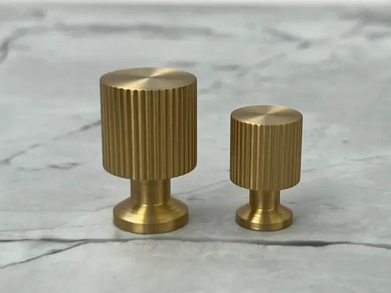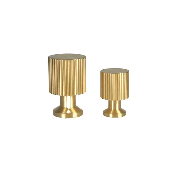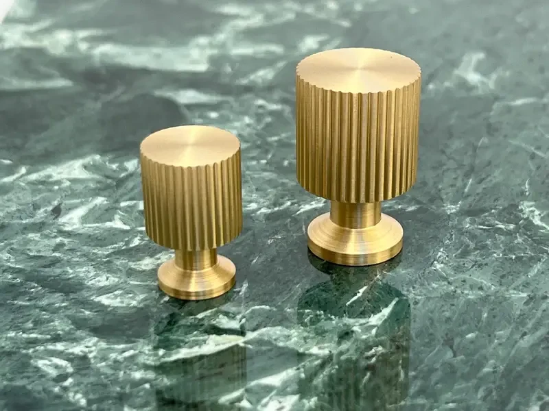Møbelknoppen har et unik look, den er i børstet messing og har riller på langs, det giver en lækker detalje i ethvert hjem, som skaber blikfang idet der ikke er mange mage til denne.