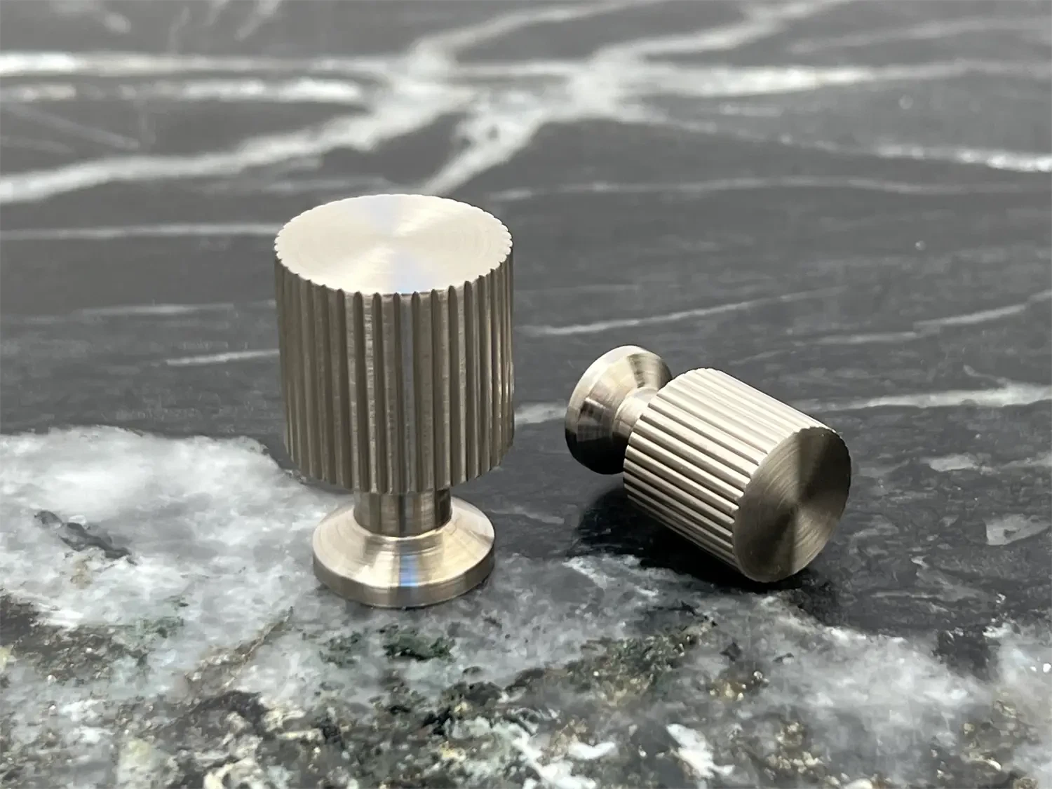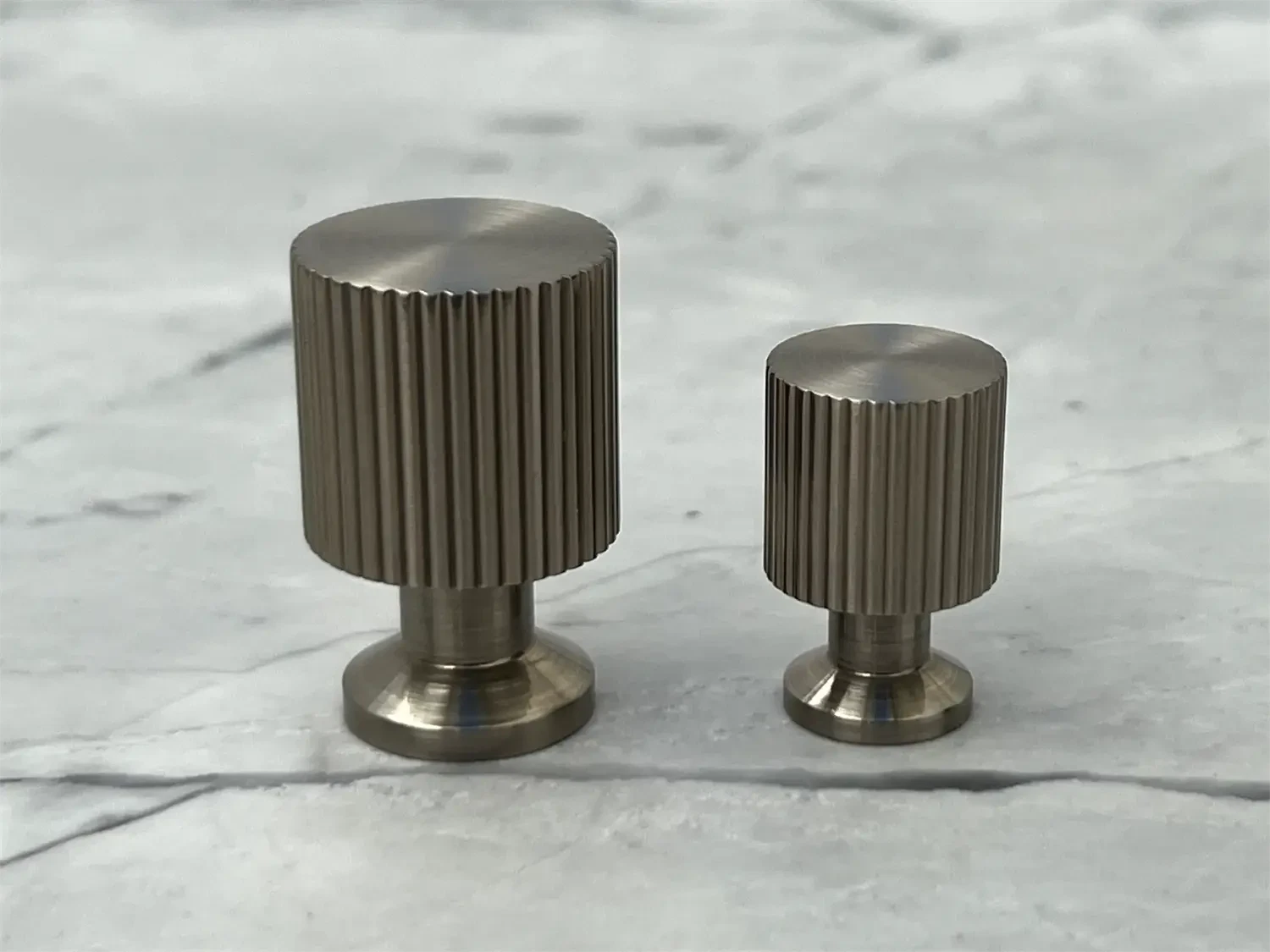 Knoppen den findes i 2 højder 25 mm / 33 mm., den har linjeret riller på langs, det giver en lækker detalje i ethvert hjem, som skaber blikfang idet der ikke er mange mage til denne.