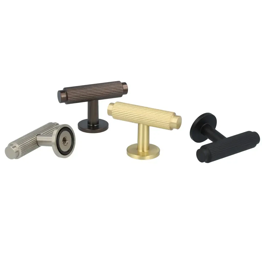 Knop T-bar i børstet messing uden lak, med mulighed for patina