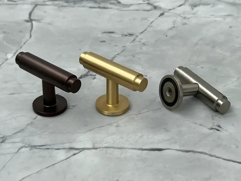 Knopper til skabe og fronter, T-bar greb som er et stilfuldt design og med en glat overflade.