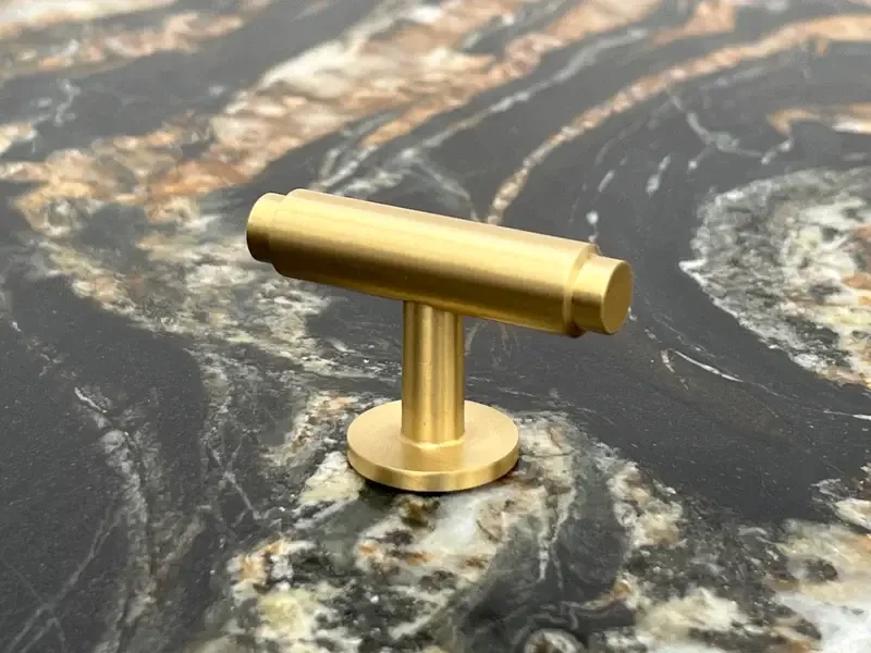 Denne møbelknop er i massiv messing uden lak, T-bar greb og i et glat, enkelt og lækkert design. Du får en helt unik møbelknop som kan skaber et specielt touch indretning i hjemmet.
