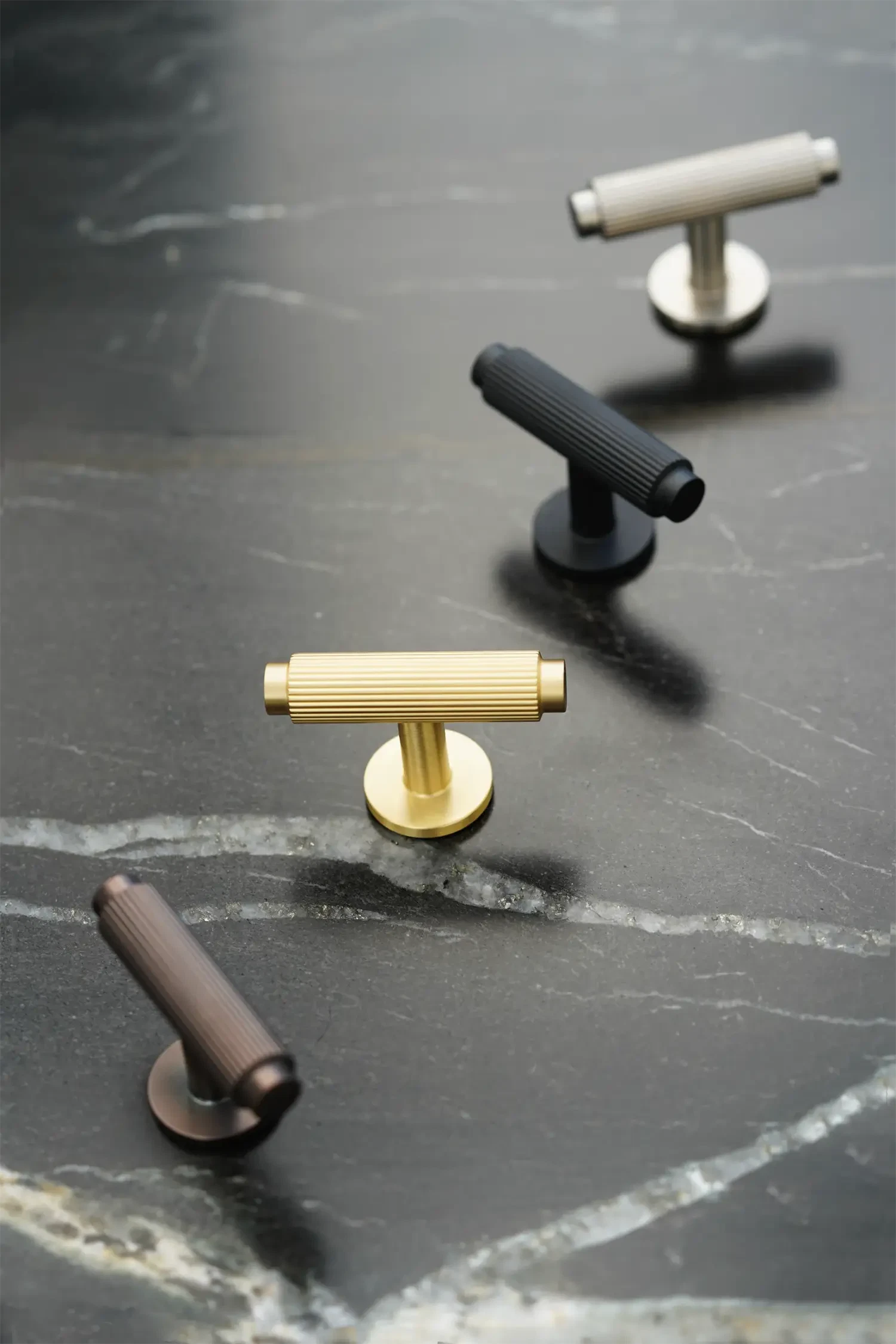 Her er en knop T-bar i en flot fremstillet bruneret messing, med riller på langs.