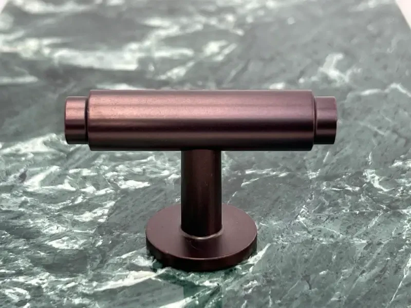 Denne møbelknop er i bruneret messing, T-bar greb og i et glat, enkelt og lækkert design. Du får en helt unik møbelknop som kan skaber et specielt touch indretning i hjemmet.