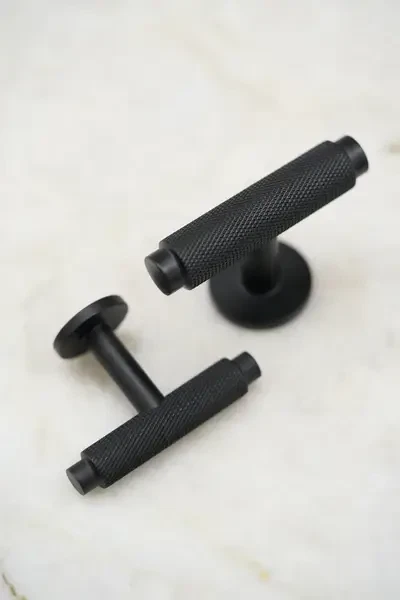 Møbelknop T-bar med Diamond cut, sort 50mm / 56 mm