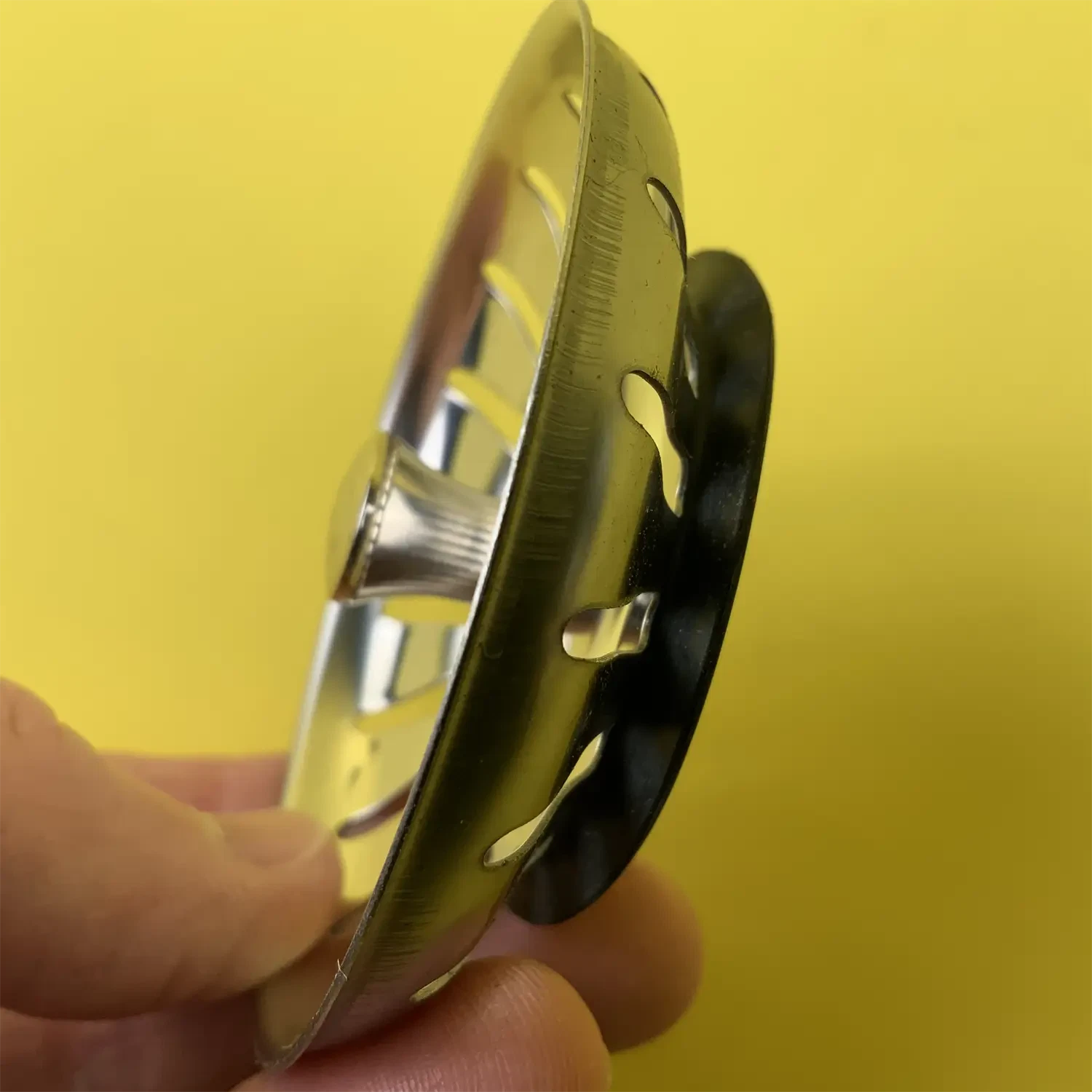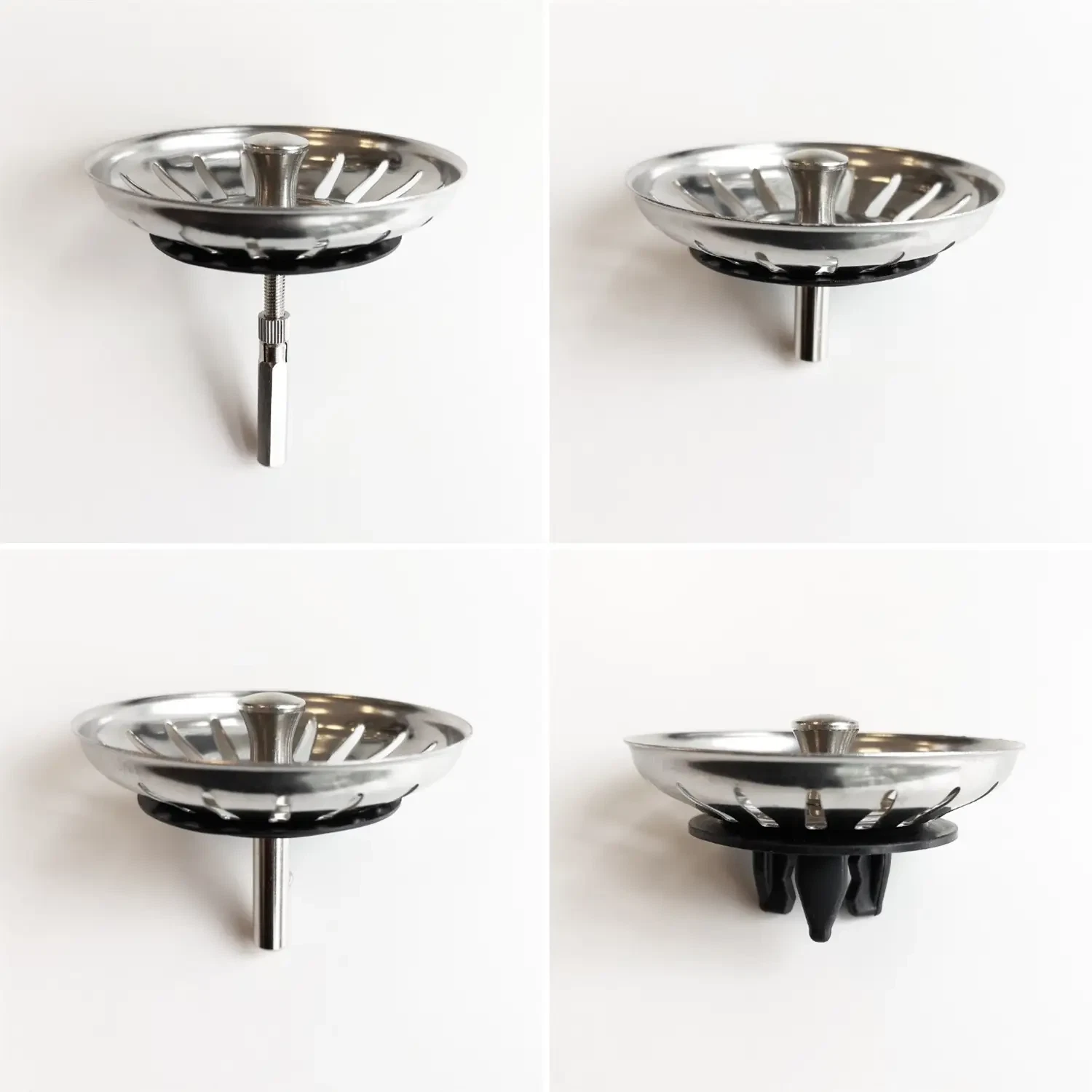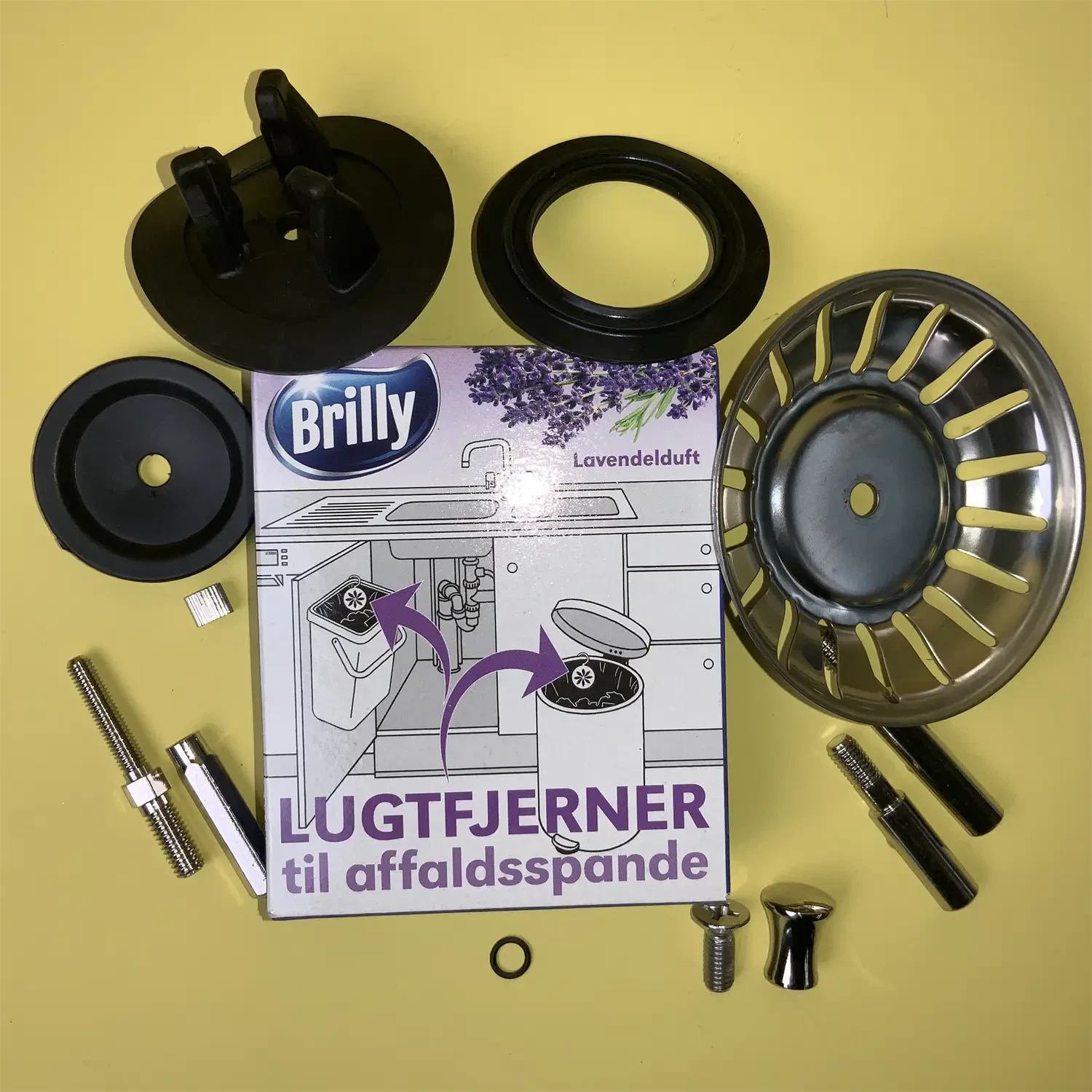 Her får du en strainer fungerende som en prop til køkkenvasken, som fanger madaffaldet på vej ned. Vær opmærksom på at vasken skal have et afløbshul med fordybning - hvis det er et "fladt" afløbshul, kan der selvfølgelig ikke sidde en strainer i hullet til vasken.