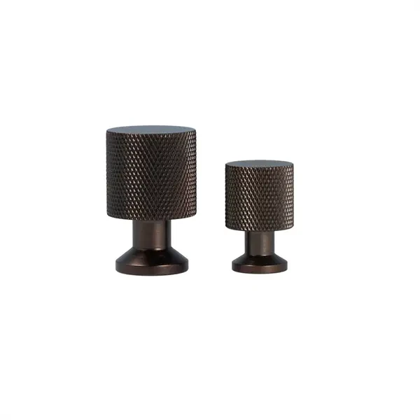 Denne rå møbelknop i bruneret med diamond cut vil passe godt til de fleste møbler. Diamond cut mønsteret giver et godt greb når man tager fat i knoppen.