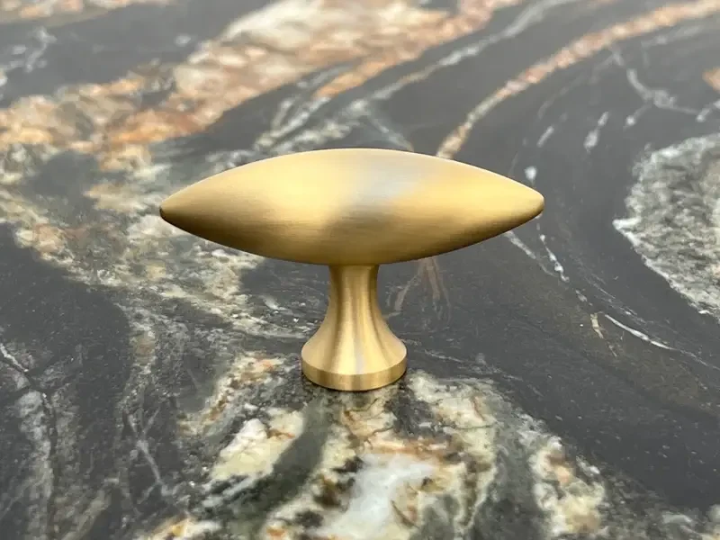 Knoppen er lavet af massiv messing, som gør den robust og giver en varig holdbarhed. Knoppens harmoniske design giver en følelse af eksklusivitet, der vil optimere udseendet af dine skuffer, låger, kommoder eller skabe. Skab blikfang med denne subtile, men imponerende detalje, der vil løfte hele rummets udseende.