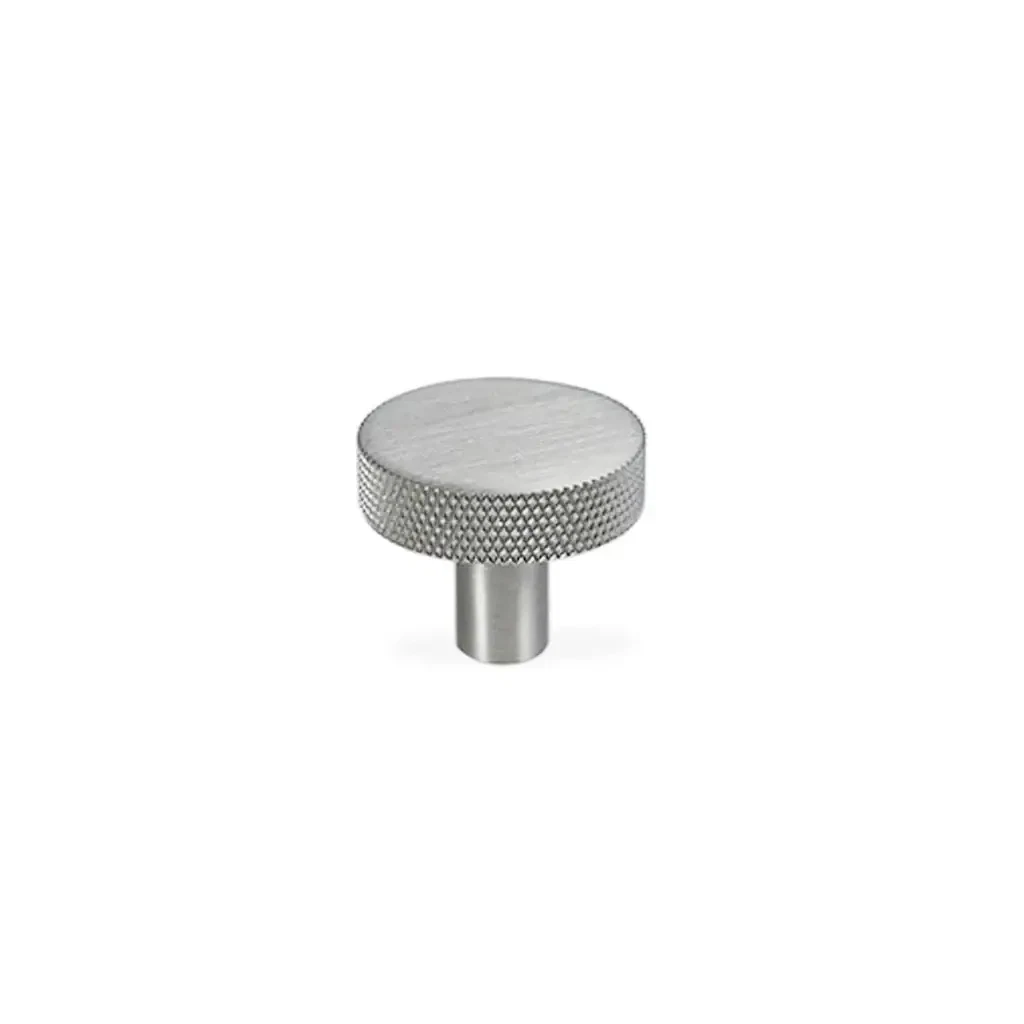 Knop i rustfri stål look er et lækkert design, hvor fronten er blank og siden er i et flot mønster.