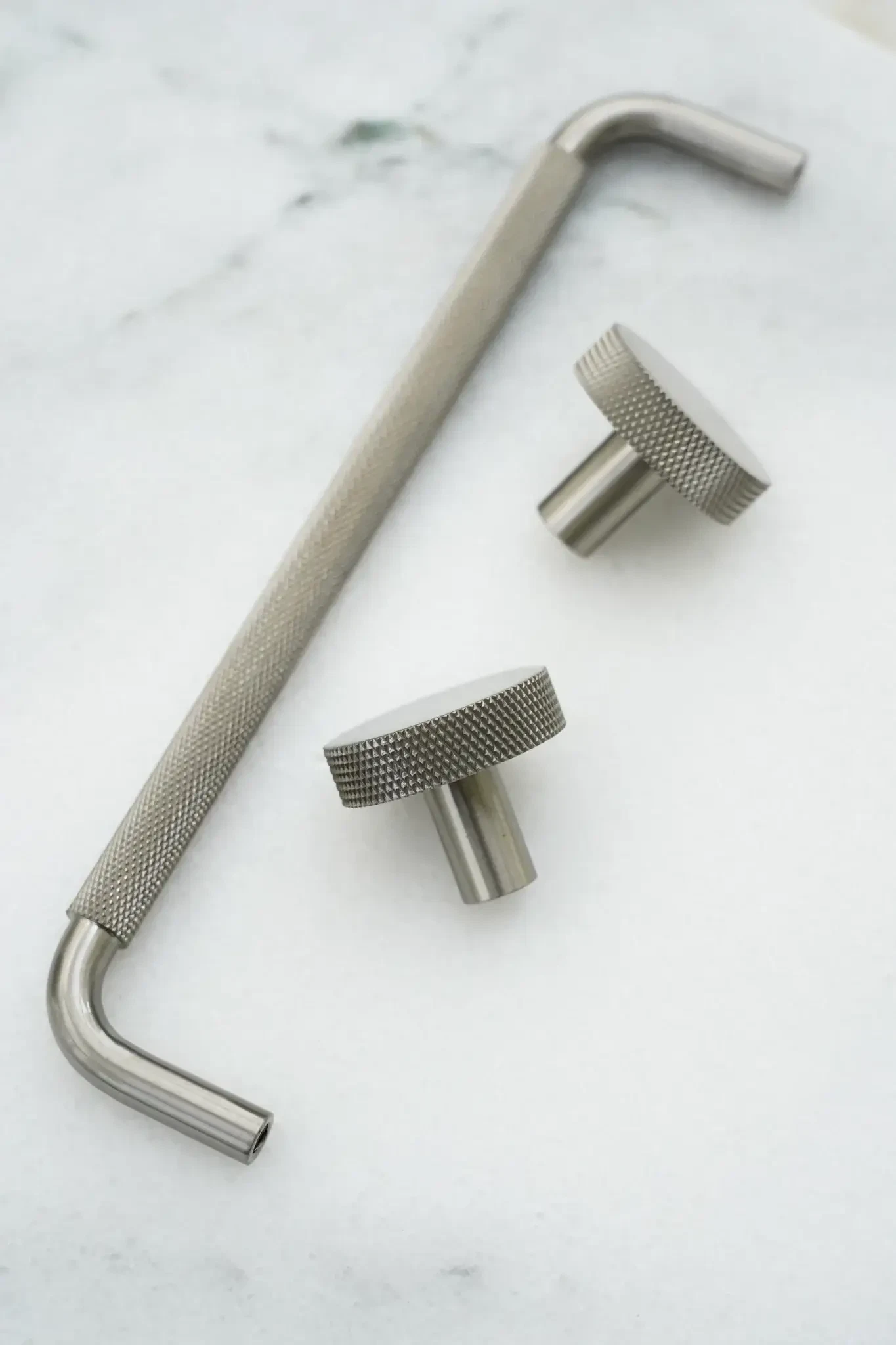 Brug disse knopper og knage i rustfri stål look til styling af dit køkken, entréen, børneværelset eller når du vil give dit møbel et råt og eksklusivt udseende.