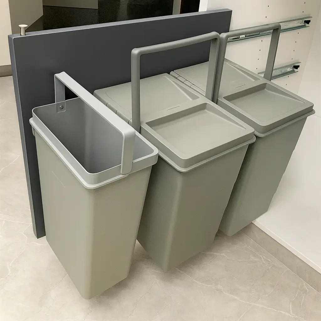 Du har også muligheden for at tilpasse og bygge dit eget udtræks system til dine affaldsspande, ved at bestille og selv monterer vores basisplade som finde i hvid og grå, og på den måde får du plads til flere affaldsspande i skabet.