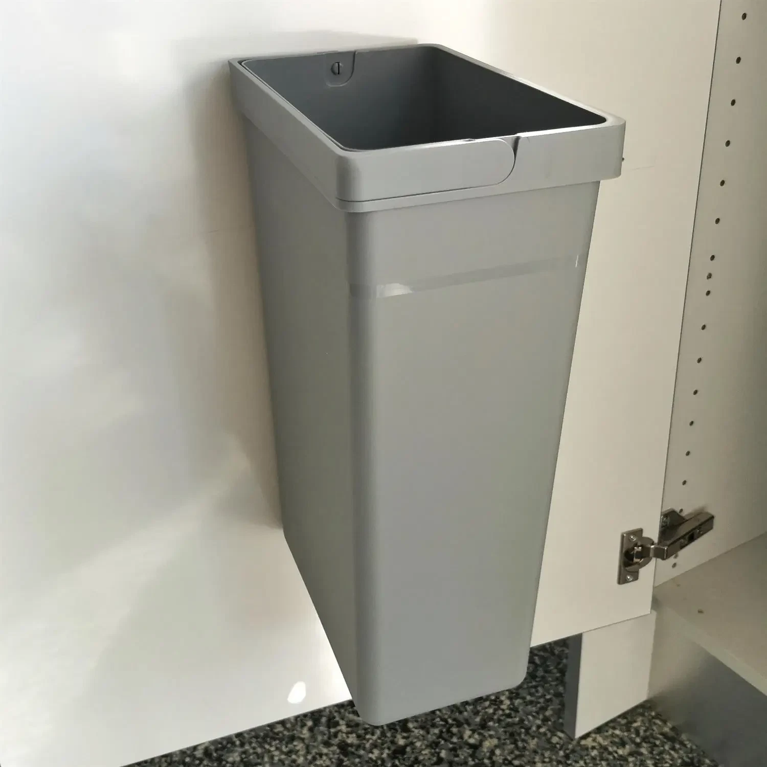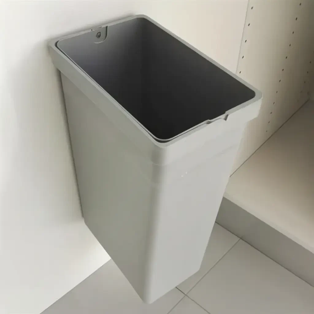 Du bygger dit affaldssorterings system efter mål, ved at monterer vores basisplade som findes i hvid og grå. Du hænger affaldsspandene op her, som der nu er plads til i skabet.