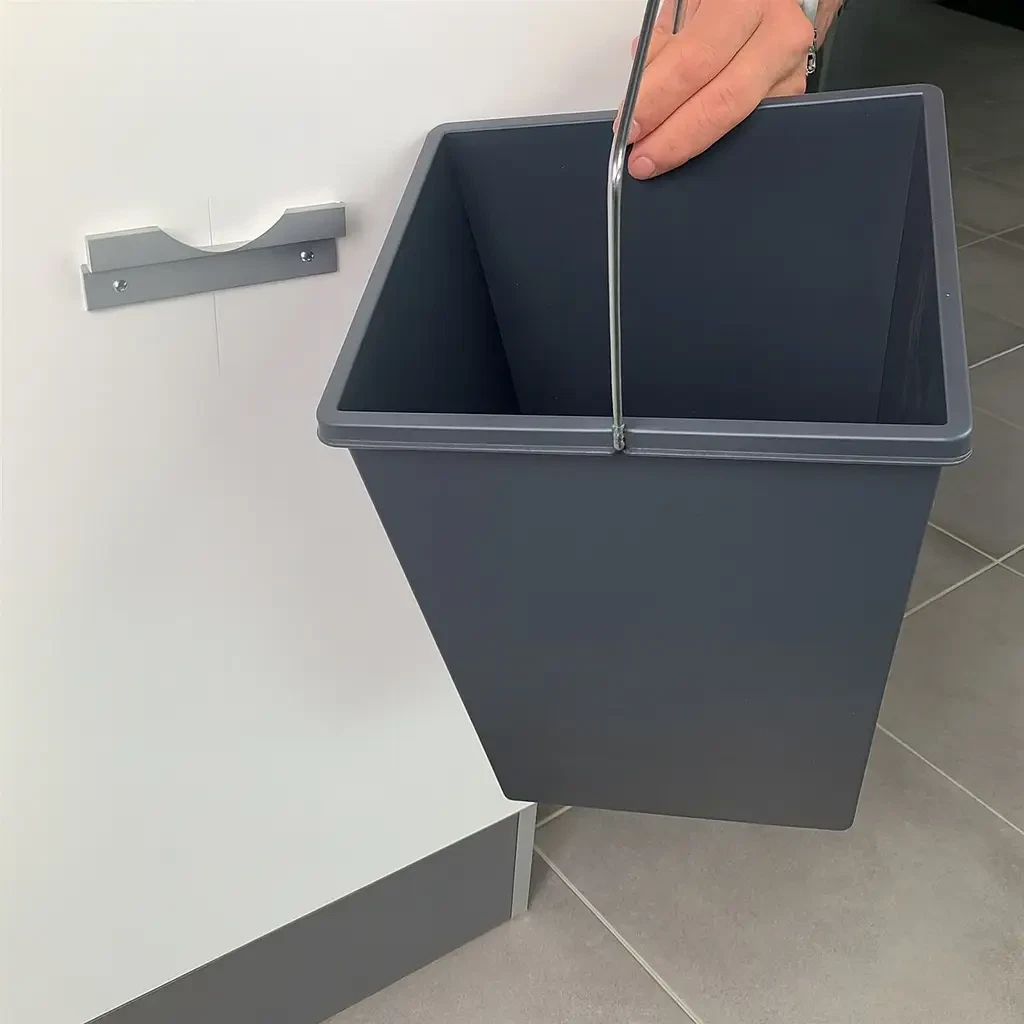 Med et vægbeslag kan du skabe mere plads, ved at hænge din affaldsspand op.
