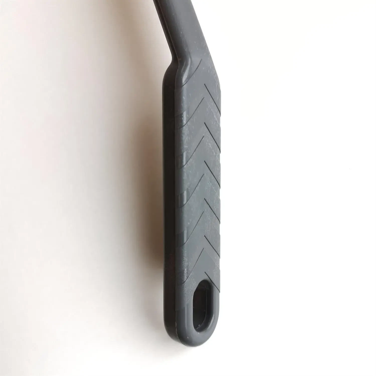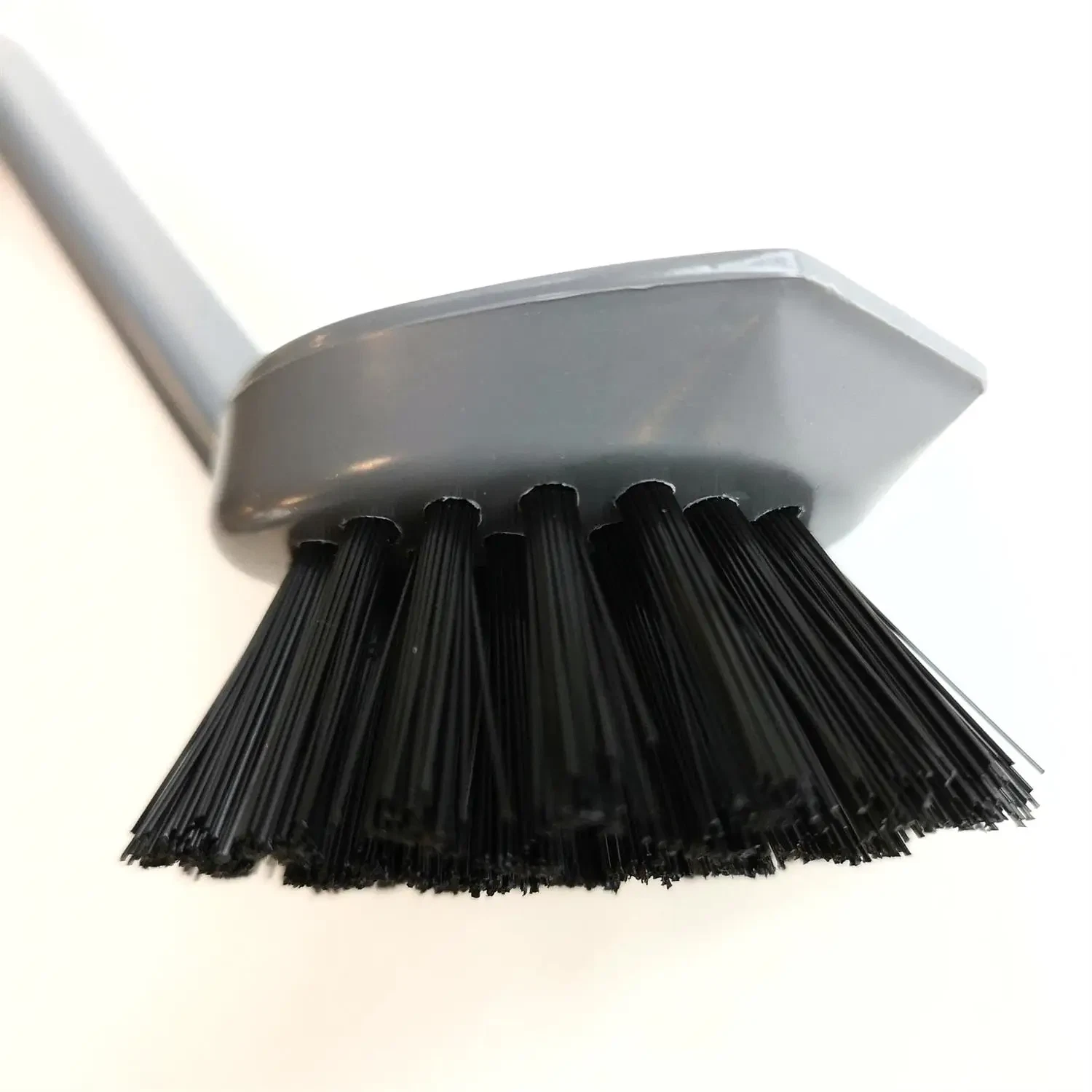Denne opvaskebørste er solid og ligger godt i hånden. Den er grå med sorte børster.