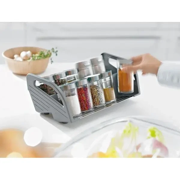 Denne smarte krydderiholder fra Orga-Line hjælper med at holde styr på krydderierne og samtidig give et nemt overblik - uanset om der er etiketter på, eller de er hjemmelavede fra haven. Den fungerer også som en bakke, så du nemt kan flytte dem rundt i køkkenet. Ligger der glemte krydderier i dine skuffer, er dette en god måde at få dem frem og brugt.