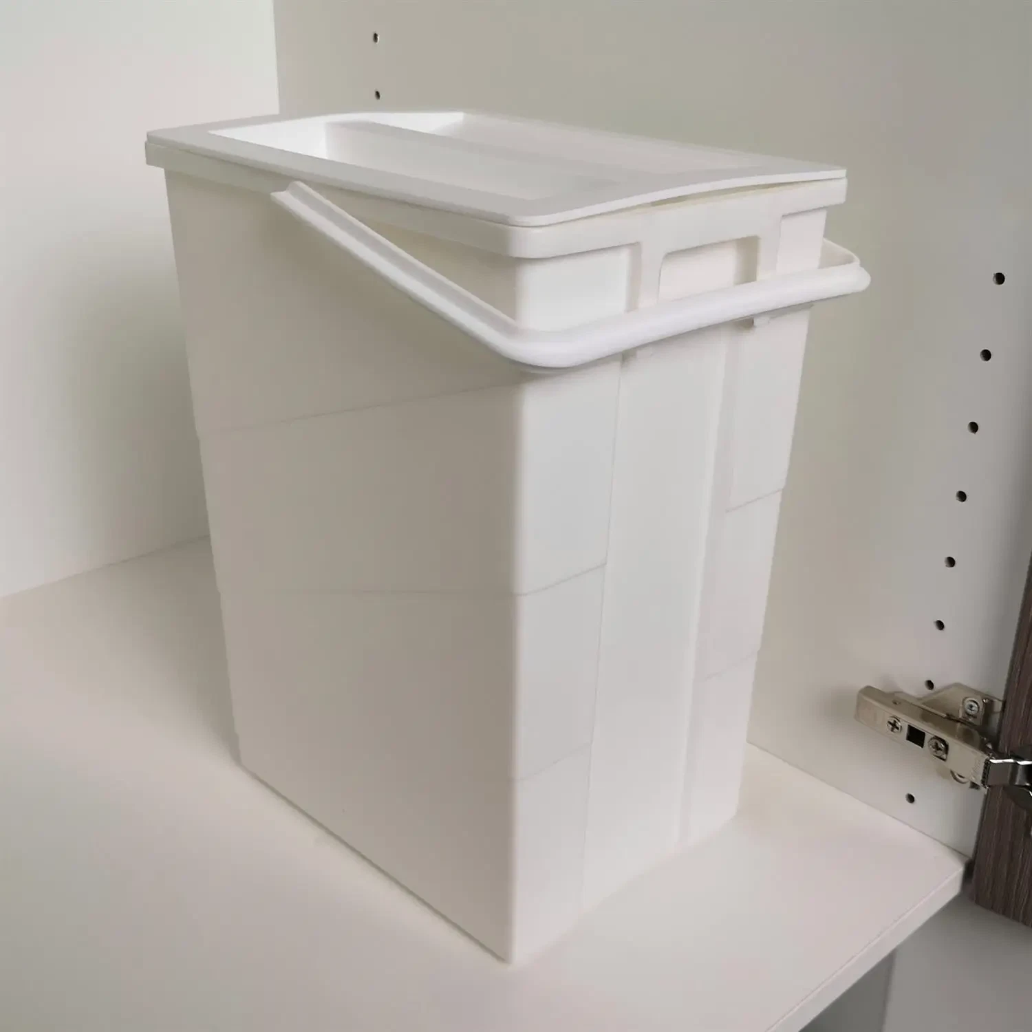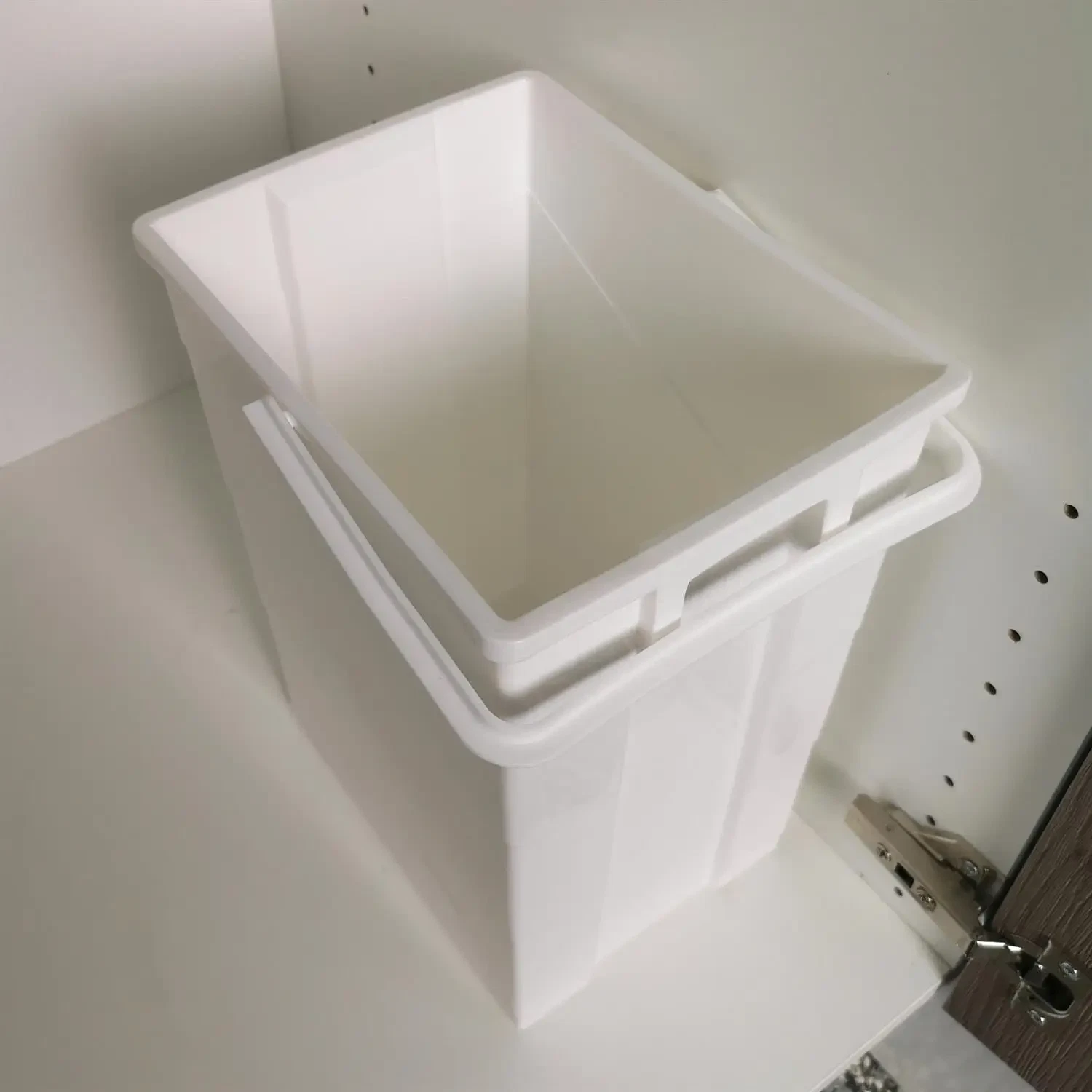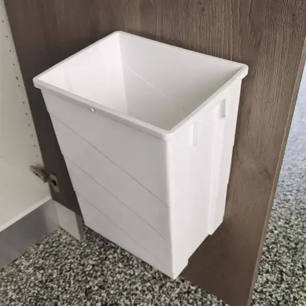 Skraldespand i en flot og hygiejnisk hvid farve. Stil den blot på bunden af ​​dit vaskeskab og få plads til mere. Brug den med eller uden låg. Ønsker du den skal hænges op, skal der tilkøbes et ophængs beslag.