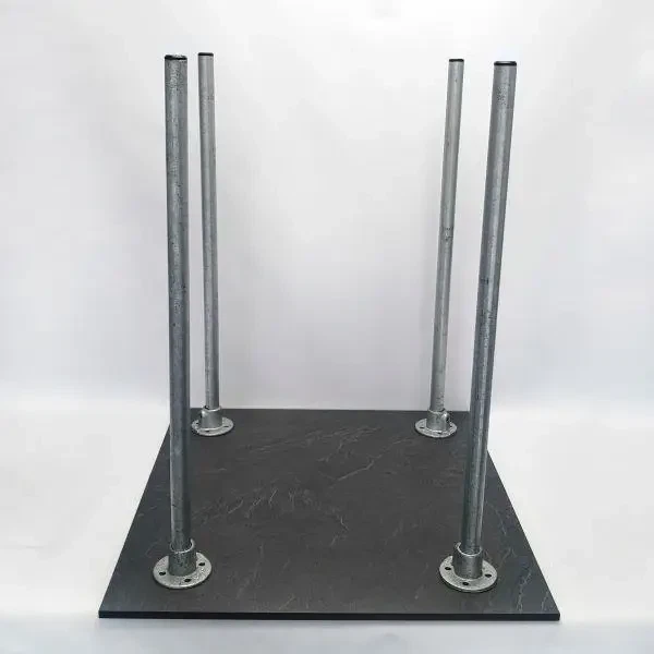 Stålben af vandrør - rustikke bordben til plankebord eller som sokkelben. Anslaget mod gulvet er af solidt sort plastgummi, der sikrer mod mærker i gulvet. Vælg din højde ovenfor.
