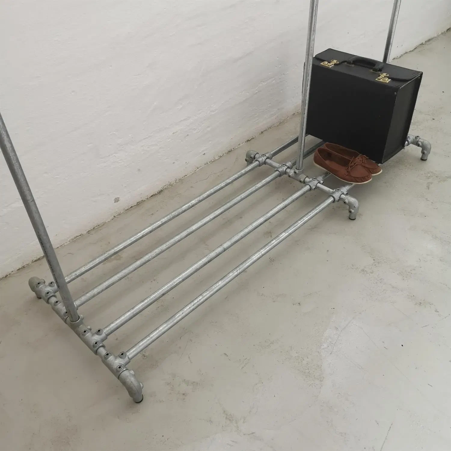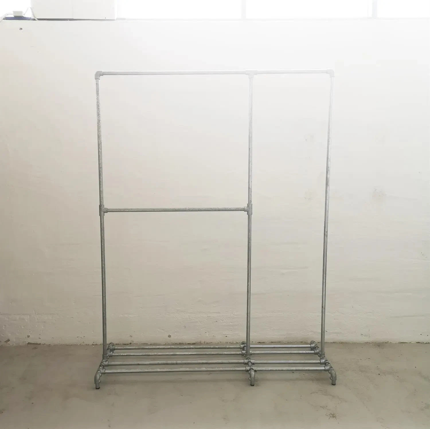 REDUCT TRIPLE med dobbelt skohylde - Tøjstativ af vandrør. Stilbare ben.