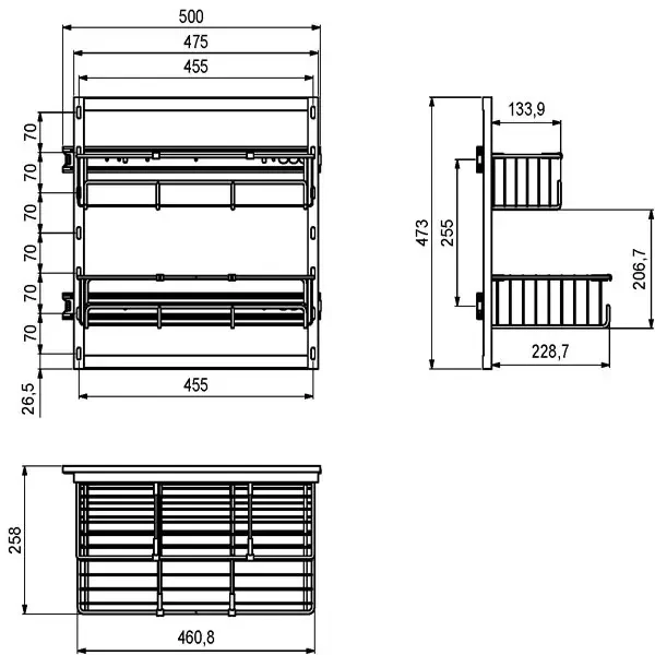 Rengøringsudtræk med 2 flytbare kurve - fuldudtræk