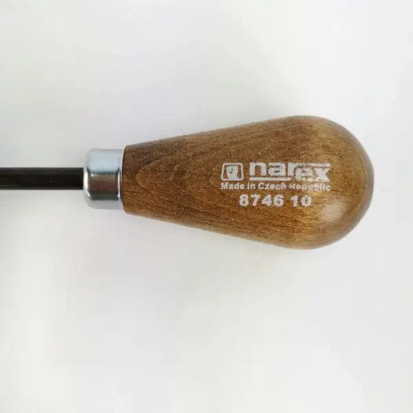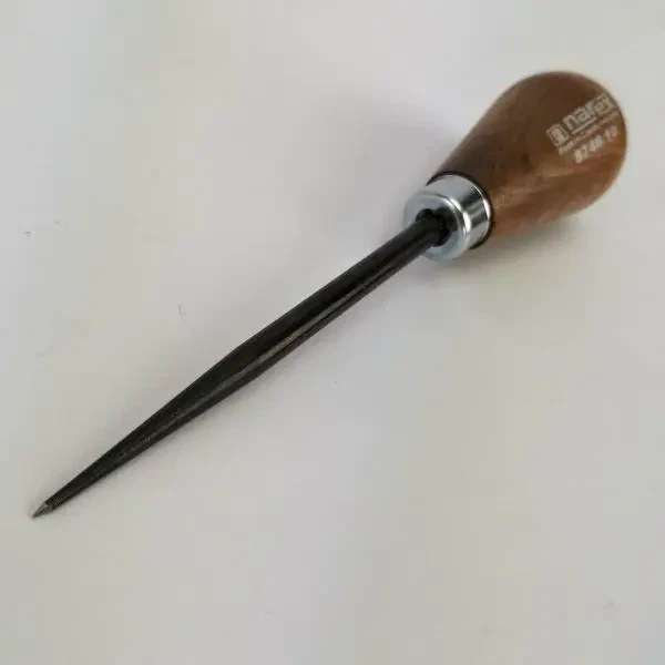 En flot retro syl med træhåndtag i mørk træ til opmærkning og markering i træ og andre materialer. Sylen er nem at arbejde med og behagelig at holde på. Meget skarp og rund spids.