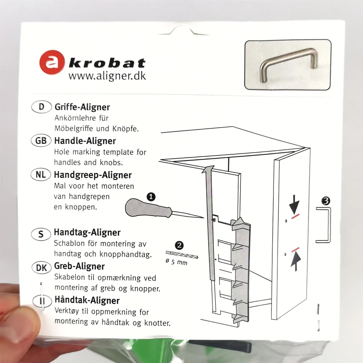 Denne grebsskabelon er et praktisk hjælpeværktøj ved montering af greb. Den sørger for: