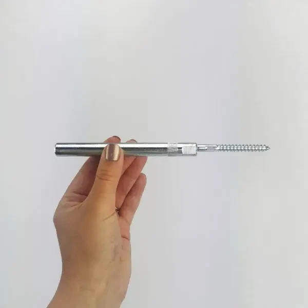 8. Hvis man ikke fik boret helt lige ind i væggen eller hylden, kan man til nøds bøje hyldebæreren med en rørtang. Den vil så bøje sig på det tynde stykke lige før gevindet