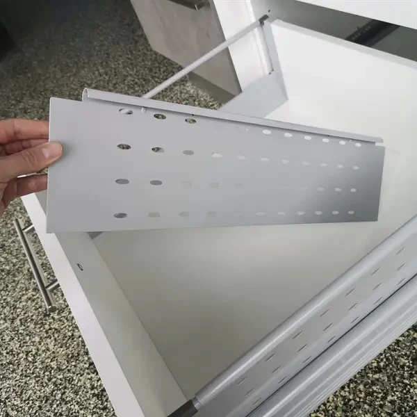 Skuffesiden klikkes blot fast på relingstangen. Se billederne.