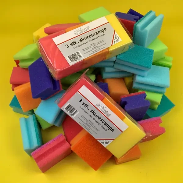 Skuresvampene har rigtig mange anvendelsesmuligheder. Med indbygget "greb" i siderne og flere skureflader.