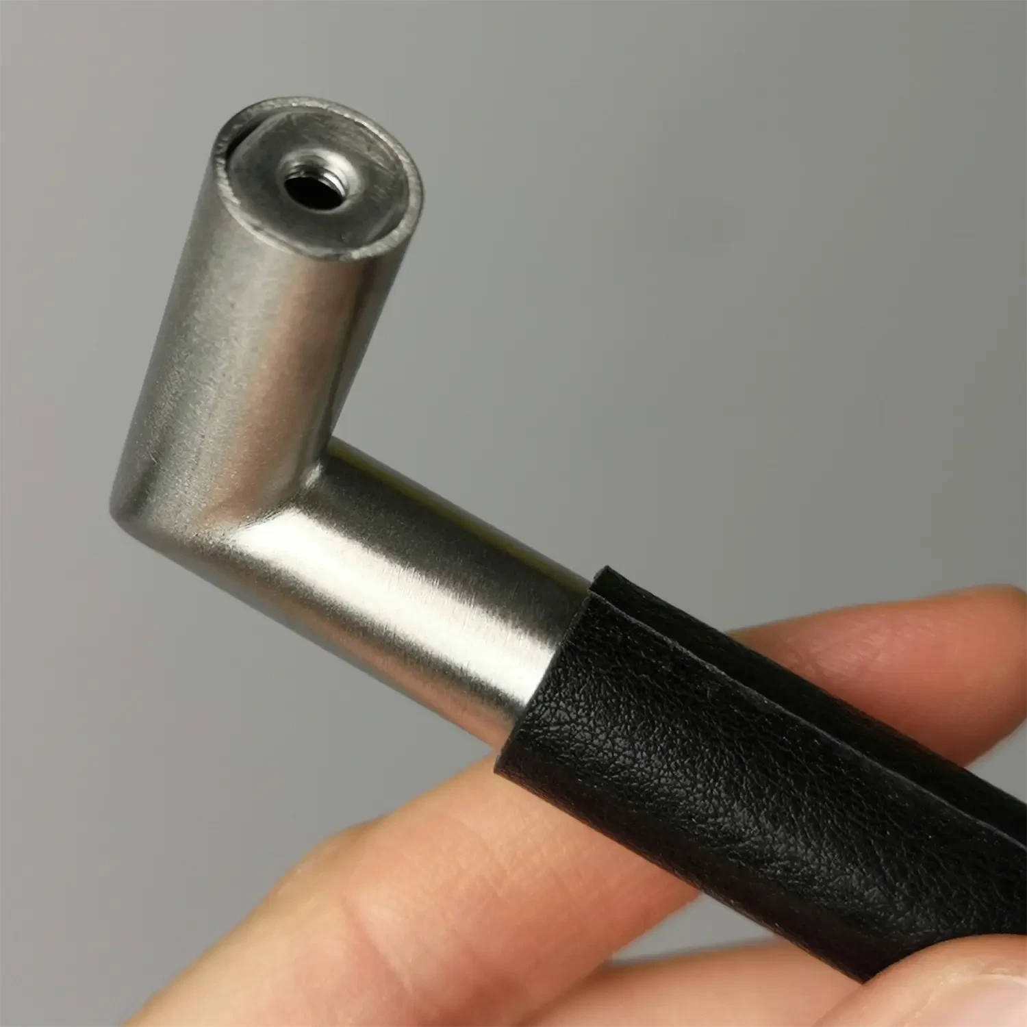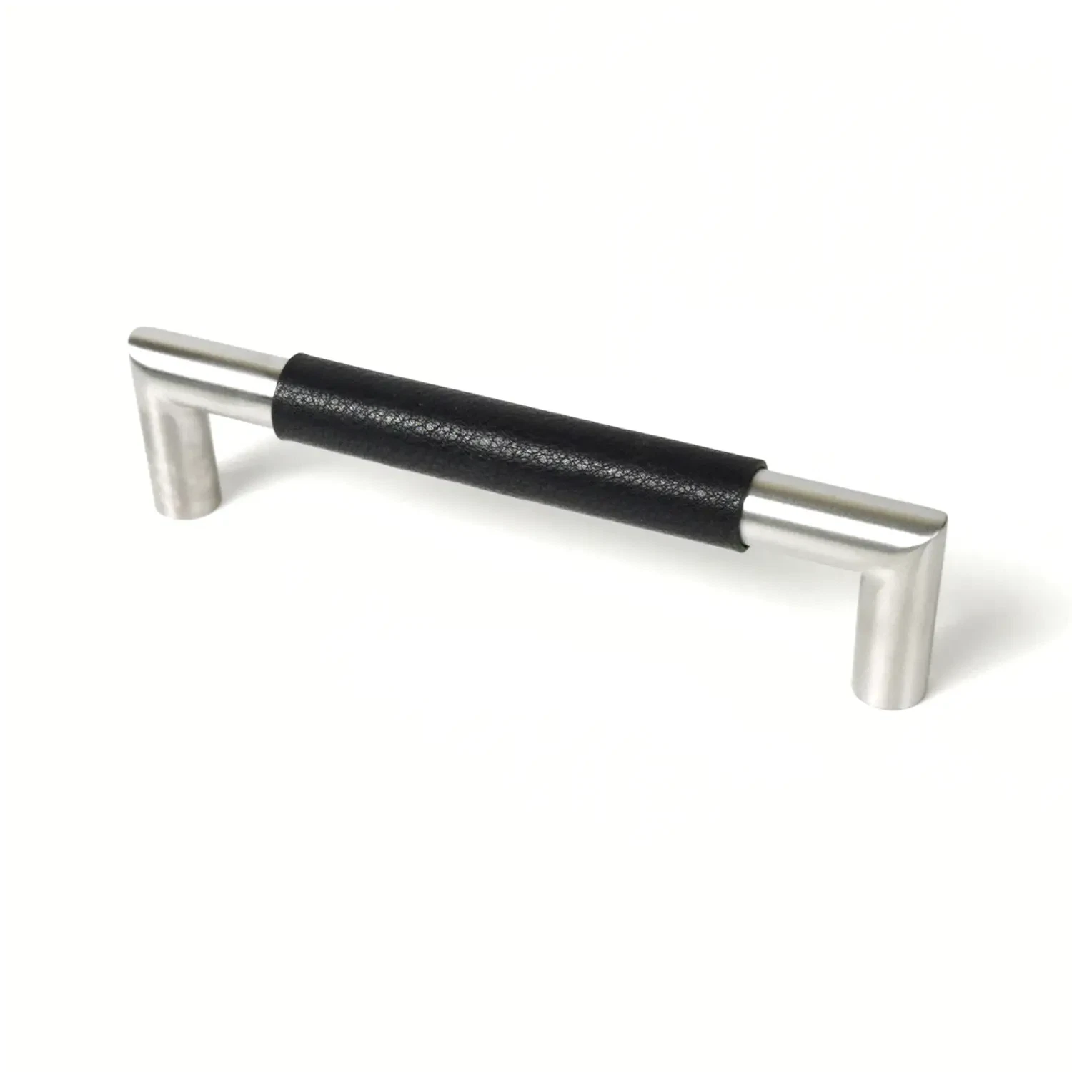 Flot bøjlegreb i let mat stål med læder touch. Helt i tidens ånd og design. Ægte læder.