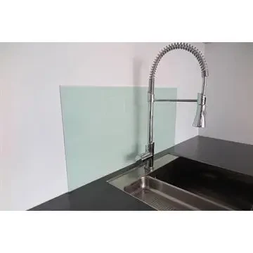 Glas stænkplade til væg ved komfur eller vask. Hærdet glas med hvidtonet bagside ( ved kontrast farvet væg kan der være situationer hvor denne kan ses igennem) og polerede kanter. Kraftig glas i kvalitet der kan klare op til 250° varm damp.