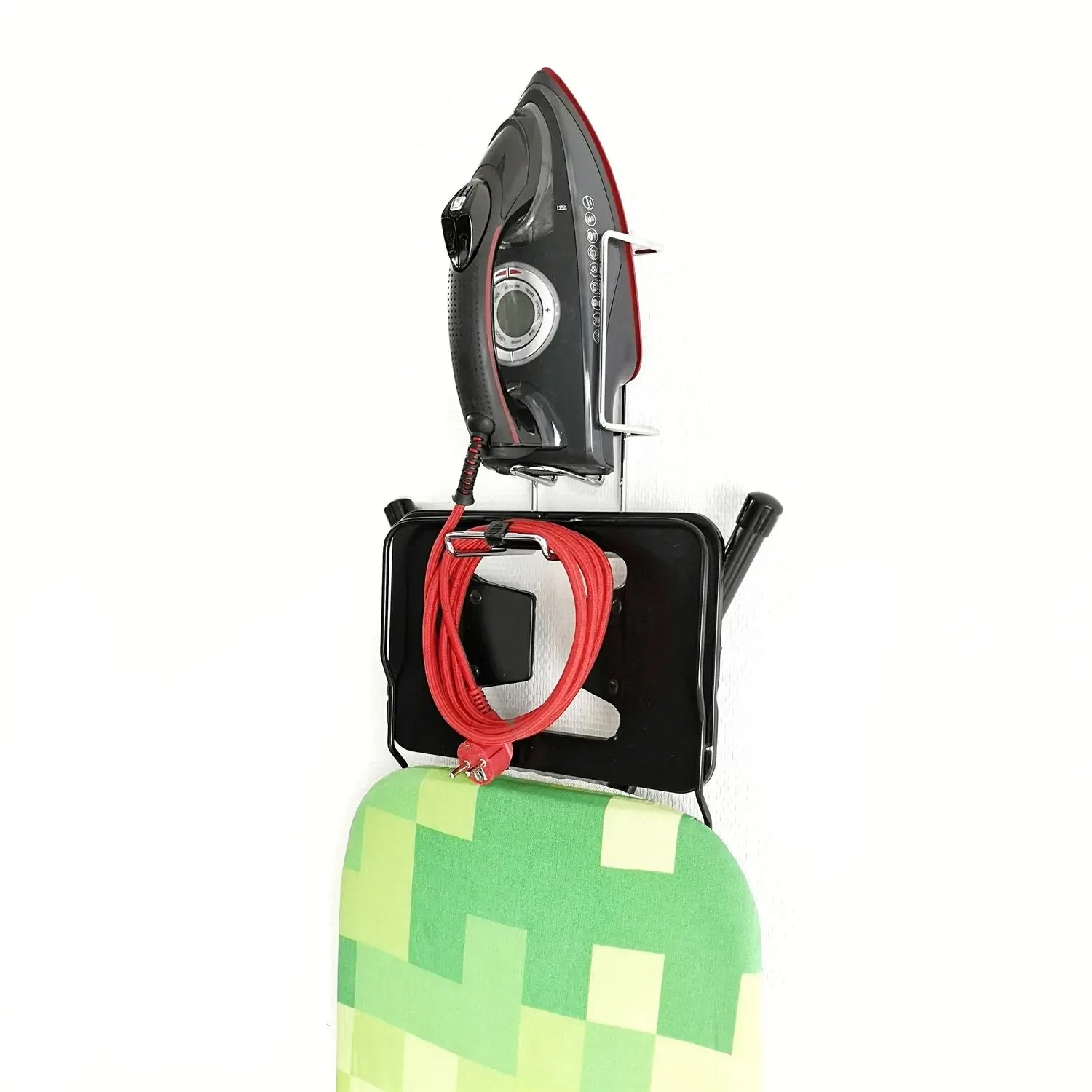 Kan monteres i et højskab eller på en væg. Kræver blot to skruer (medfølger). Bemærk længden af dit strygebræt - Stativet skal monteres så højt, at dit strygebræt kan hænge fra det.