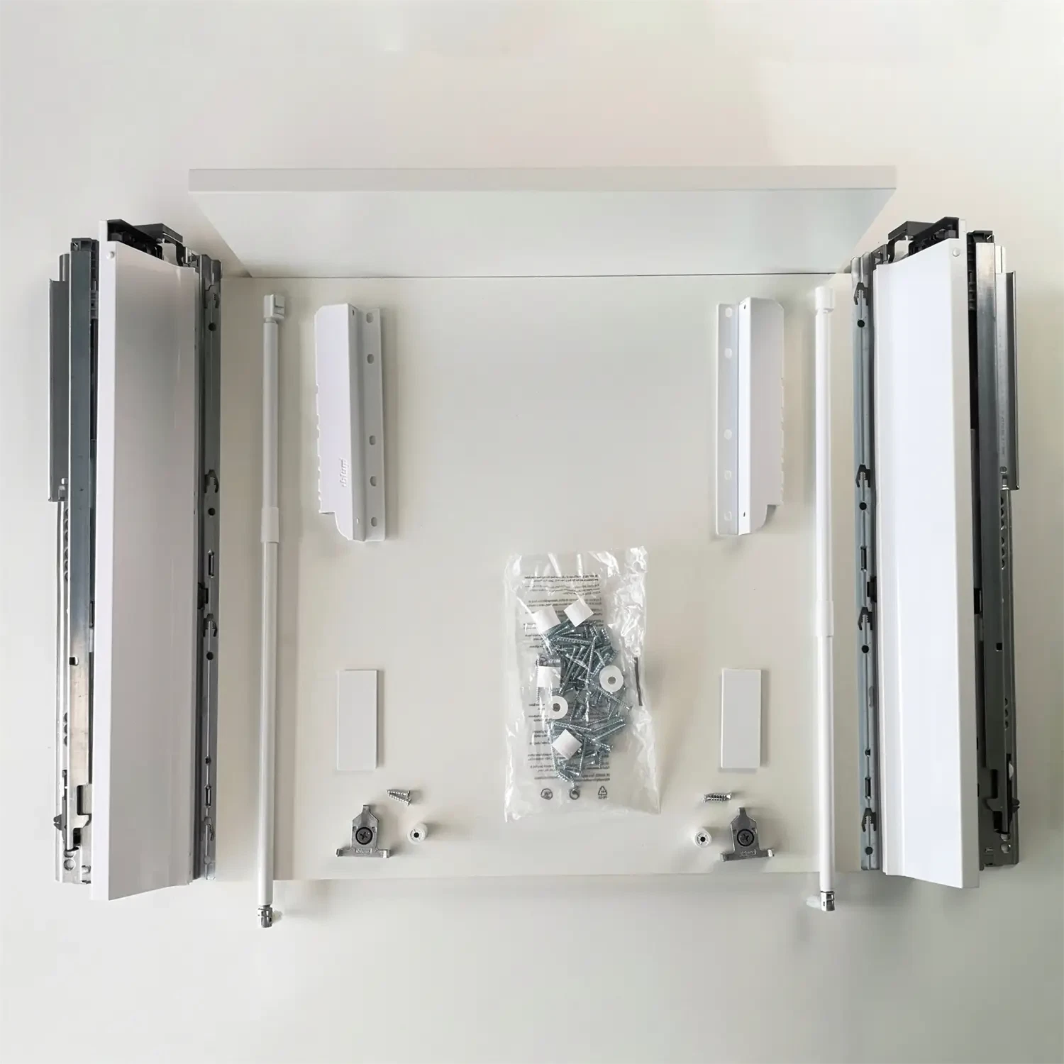 • Den indvendige skabsbredde er det præcise mål fra den ene indervæg til den anden indervæg. Du må ikke fratrække eller tilføje nogle millimeter. Vi bruger dette mål til at beregne og tilskære skuffens bredde.