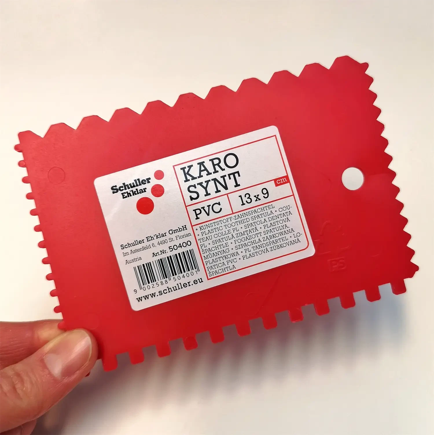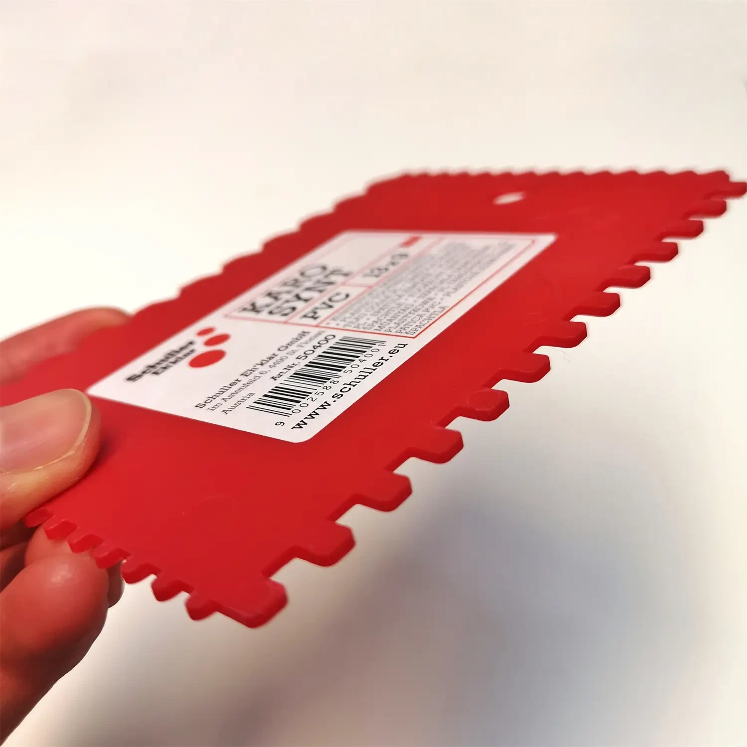 Kraftig tandspartel i plastik til brug ved montering af lim på laminat til sokkel.