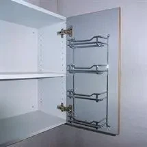Her finder du vores trådvarer til overskabe. Vi har trådhylder som krydderihylder til montering på køkkenlågen. En trådreol til krydderier i overskabet gør det let at overskue indholdet i skabet.