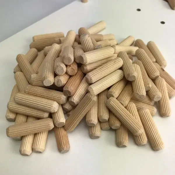 8 mm trædyvel til f.eks. samling af skabe. Dyvlen er affaset i enderne, hvilket gør dem nemmere at montere. Disse passer til et 8 mm hul -bor.