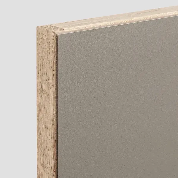 Trekroner køkkenlåger og fronter efter dine mål - grå beige højtrykslaminat med kant af træ [Pris F]
