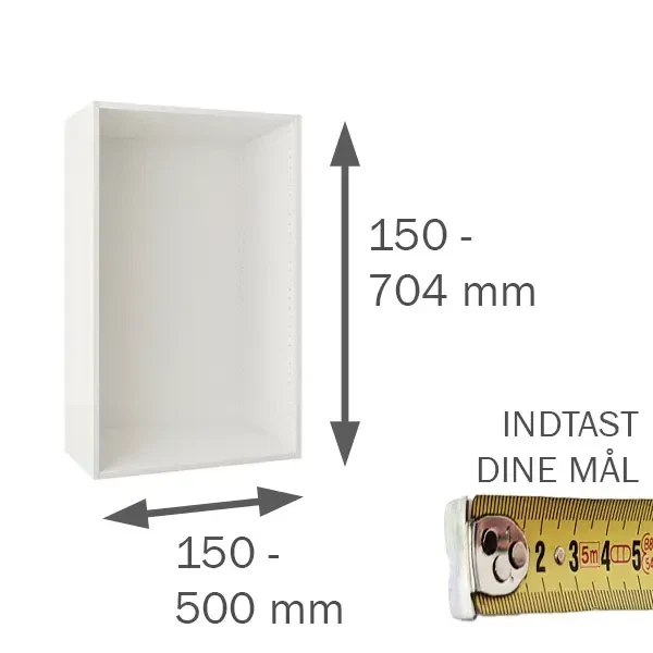 Bredde på skab (ydermål) Indtast 150-500 (mm):