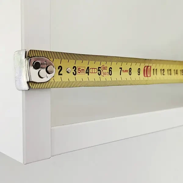 Skabets bredde minus 33 mm = Hyldens bredde
