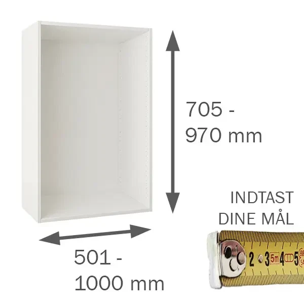 Bredde på skab (ydermål) Indtast 501-1000 (mm):